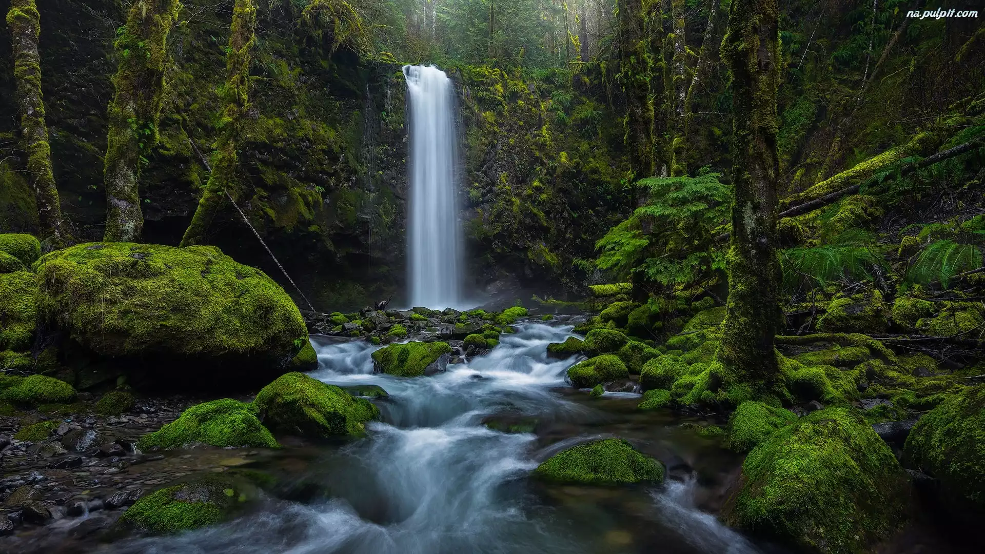 Kamienie, Wodospad, Skały, Omszałe, Las, Rzeka Na Pulpit