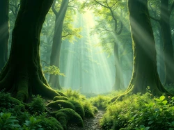 Korzenie, Las, Ścieżka, Omszałe, Przebijające światło, Drzewa