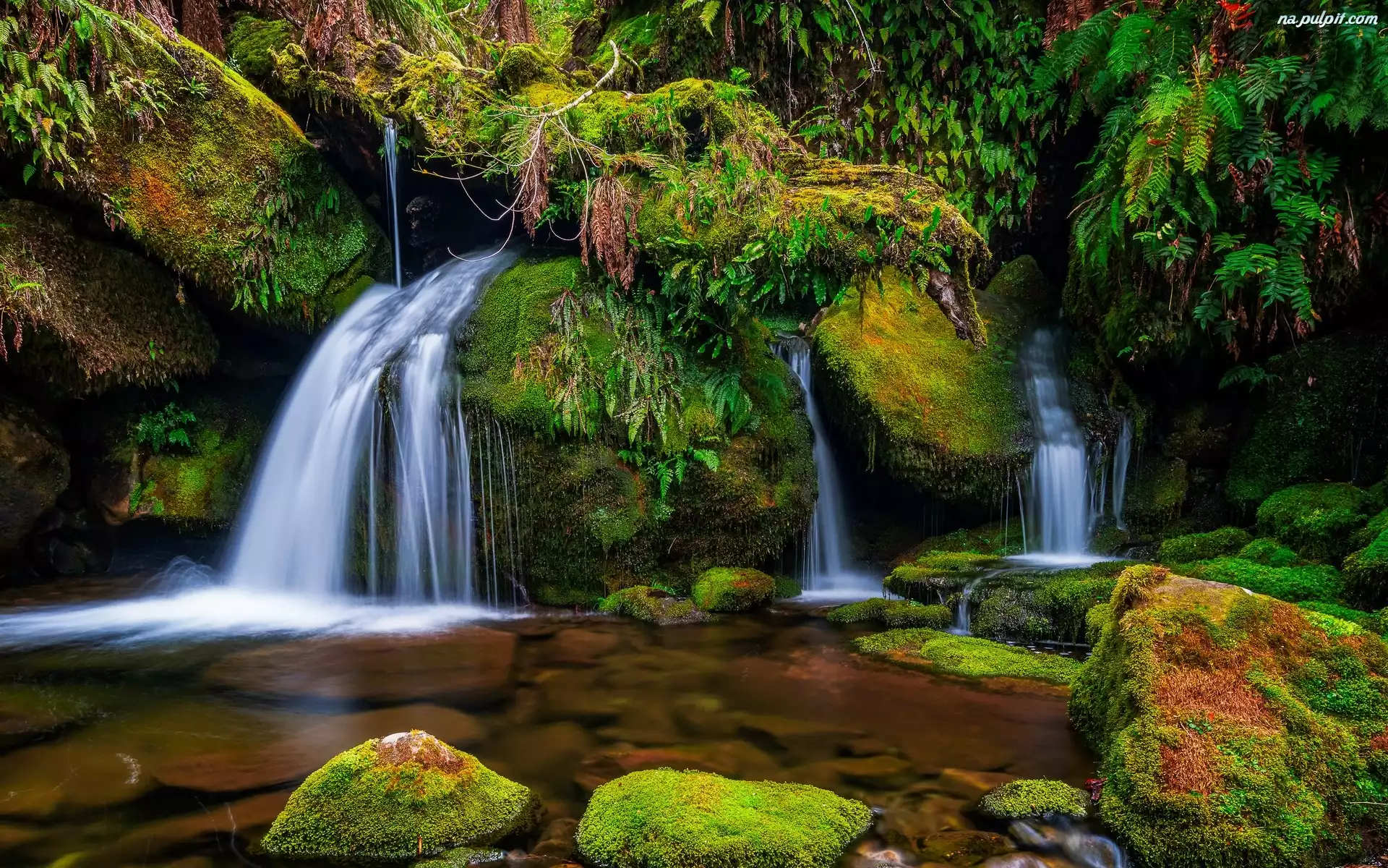 Kamienie, Wodospad, Rzeka, Omszone, Roślinność, Skały Na Pulpit