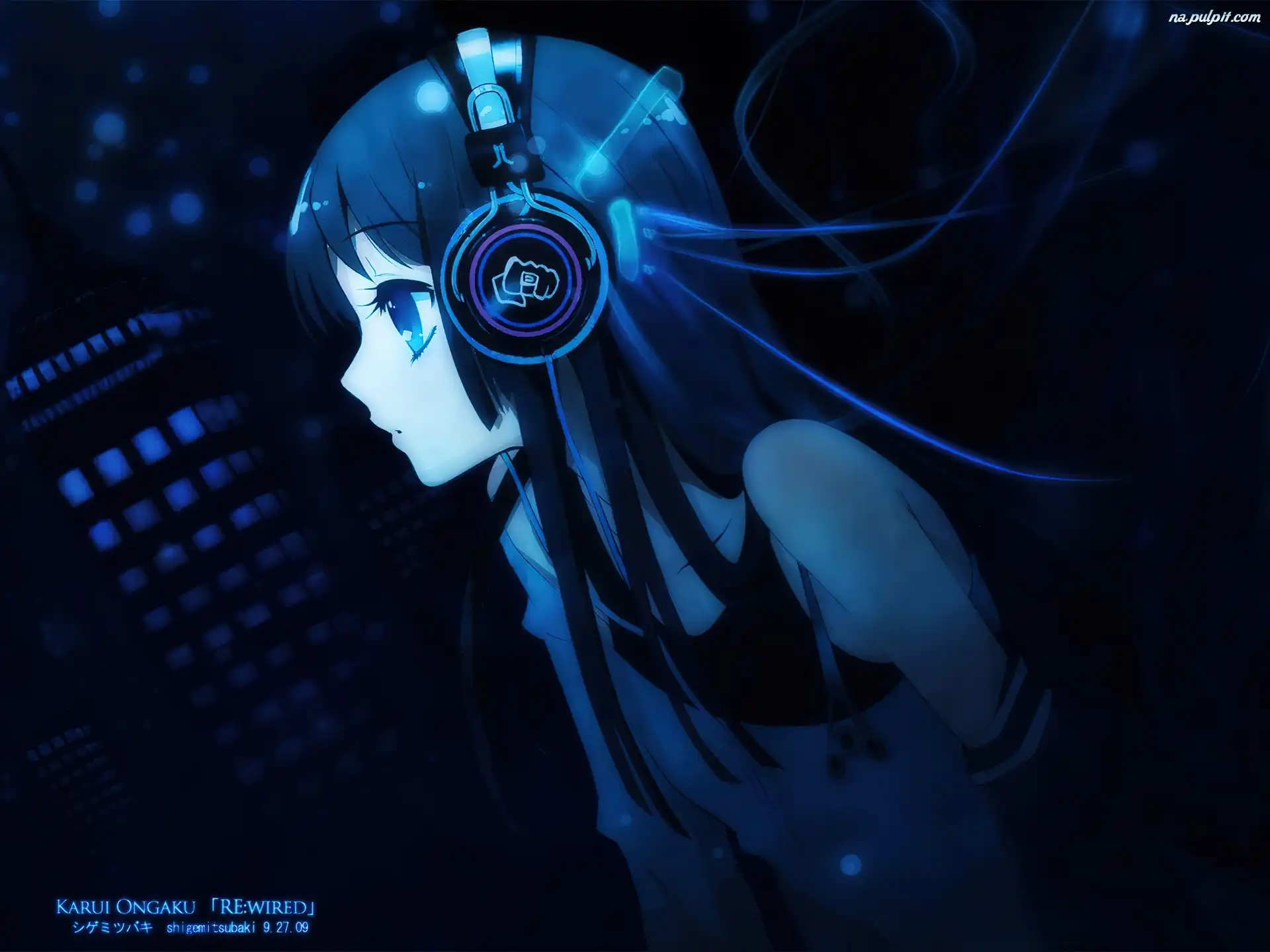 Ongaku, słuchawki, Dziewczyna, Karui Na Pulpit