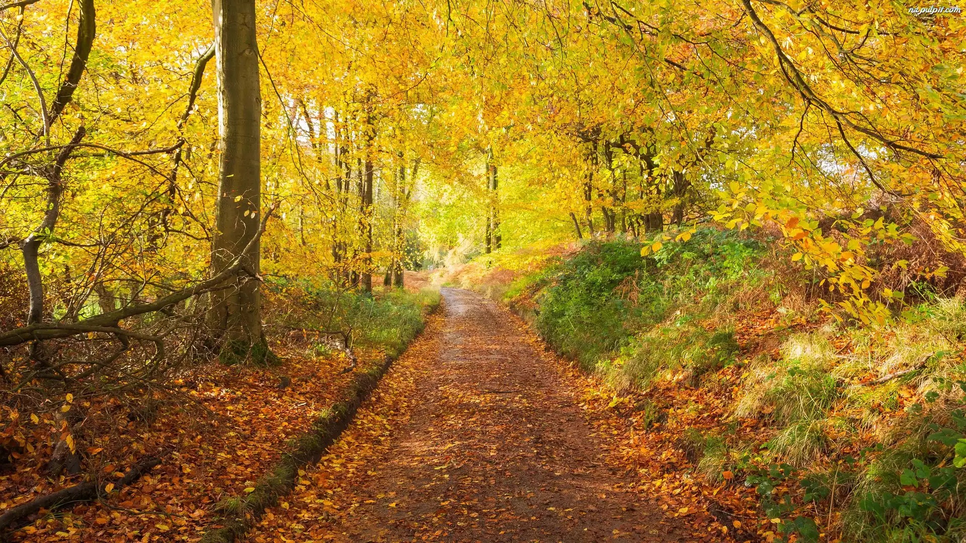 Liście, Ścieżka, Drzewa, Opadłe, Park, Jesień Na Pulpit