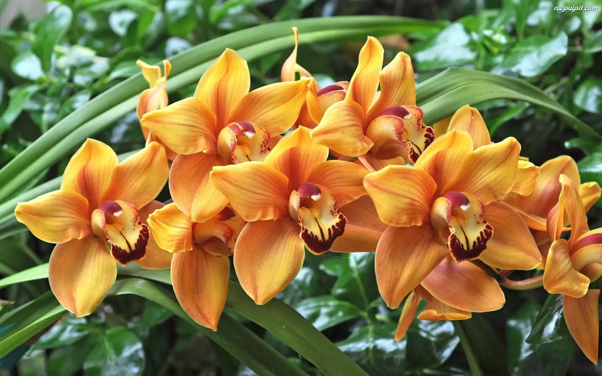 Orchidea, Kwiaty, Pomarańczowe, Storczyki Na Pulpit