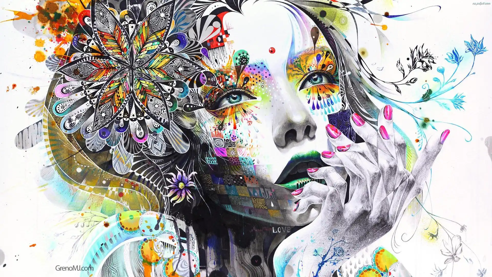 Ornamenty, Portret, Dziewczyna, Kolorowe