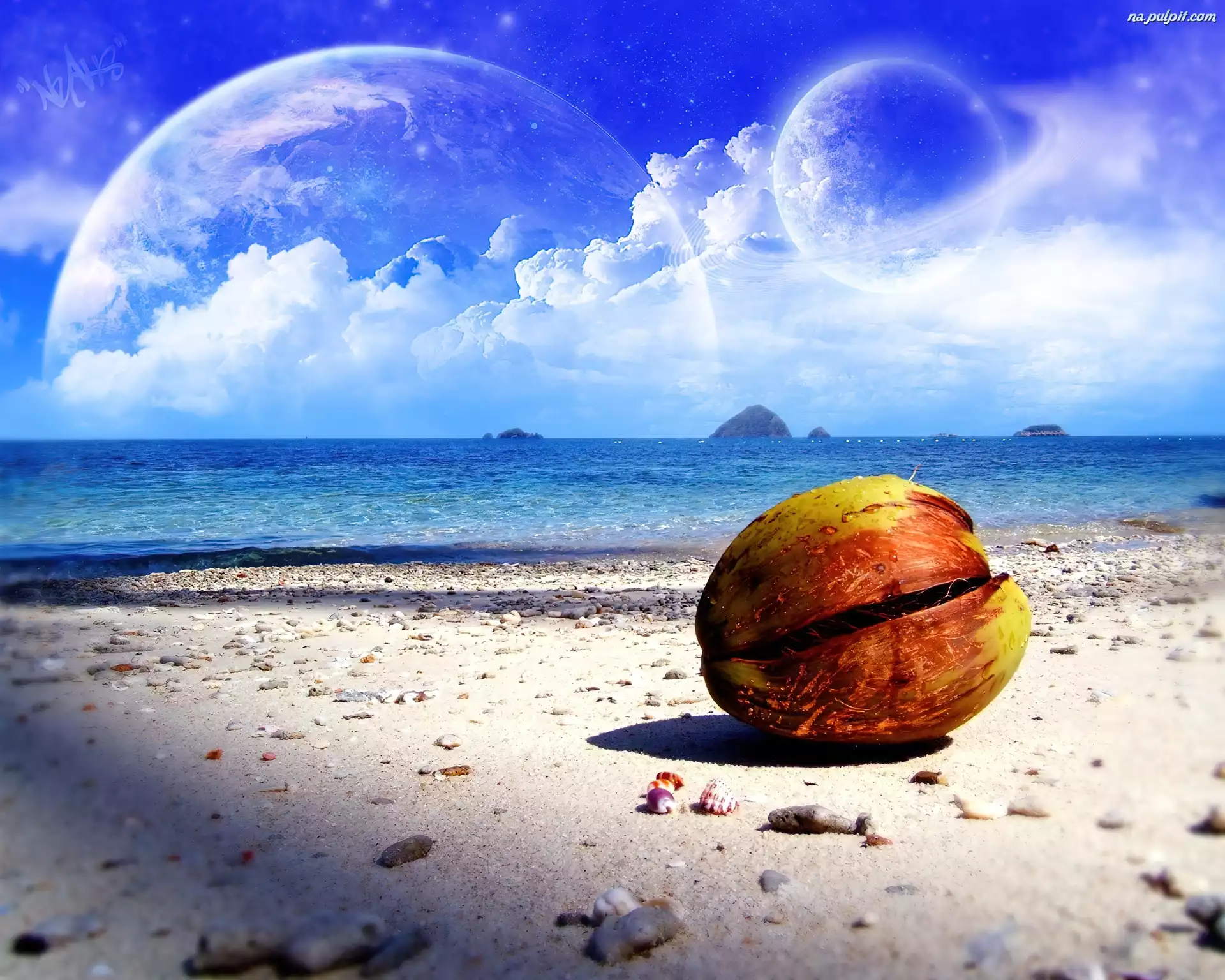 Orzech, Plaża, Morze, Planety