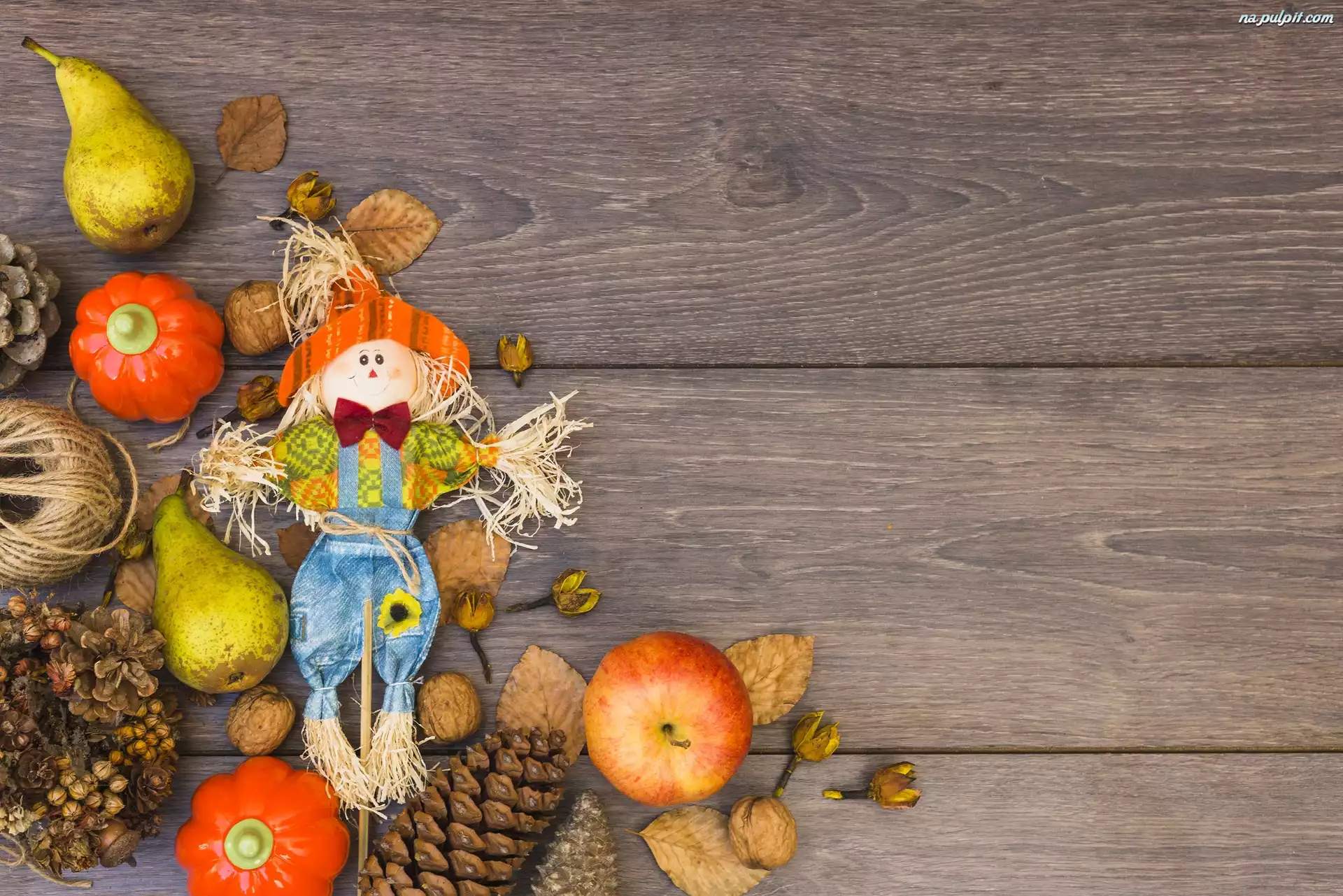 Owoce, Szyszki, Jabłka, Gruszki, Szmaciana, Lalka, Deski, Dynie, Kompozycja, Orzechy Na Pulpit