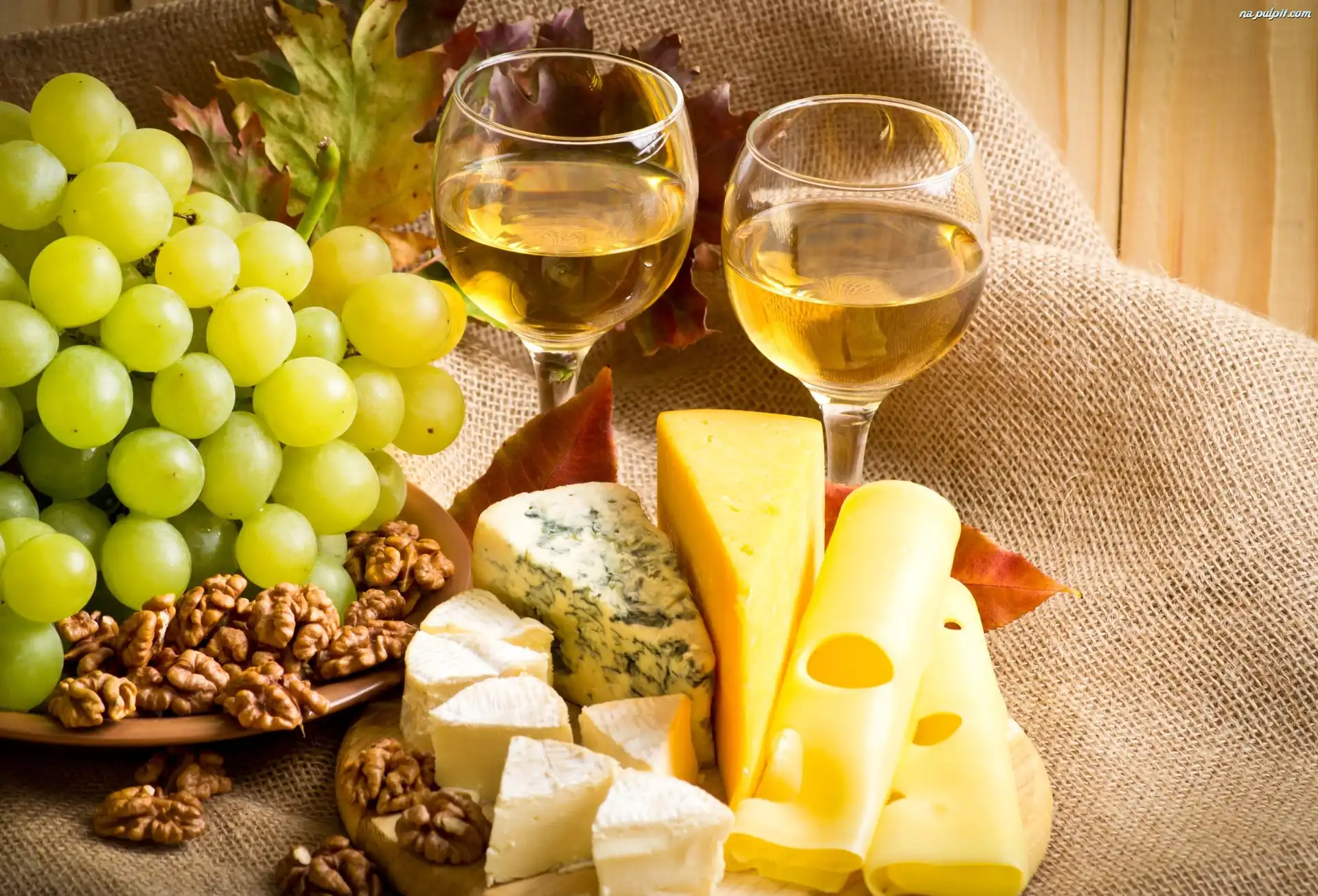 Orzechy Włoskie, Winogrono, Wino, Sery
