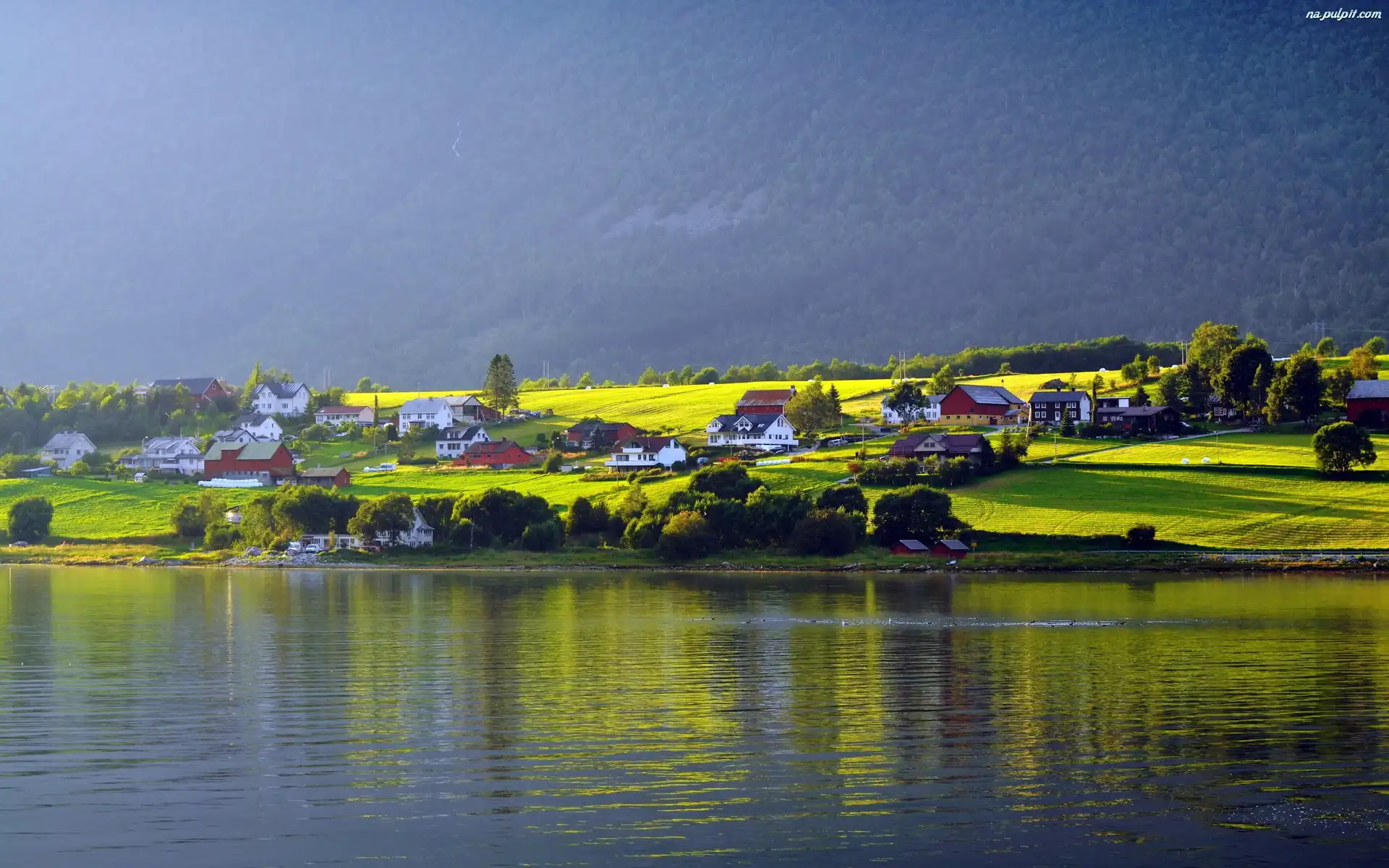 Osada, Góry, Rzeka, Łąki Na Pulpit
