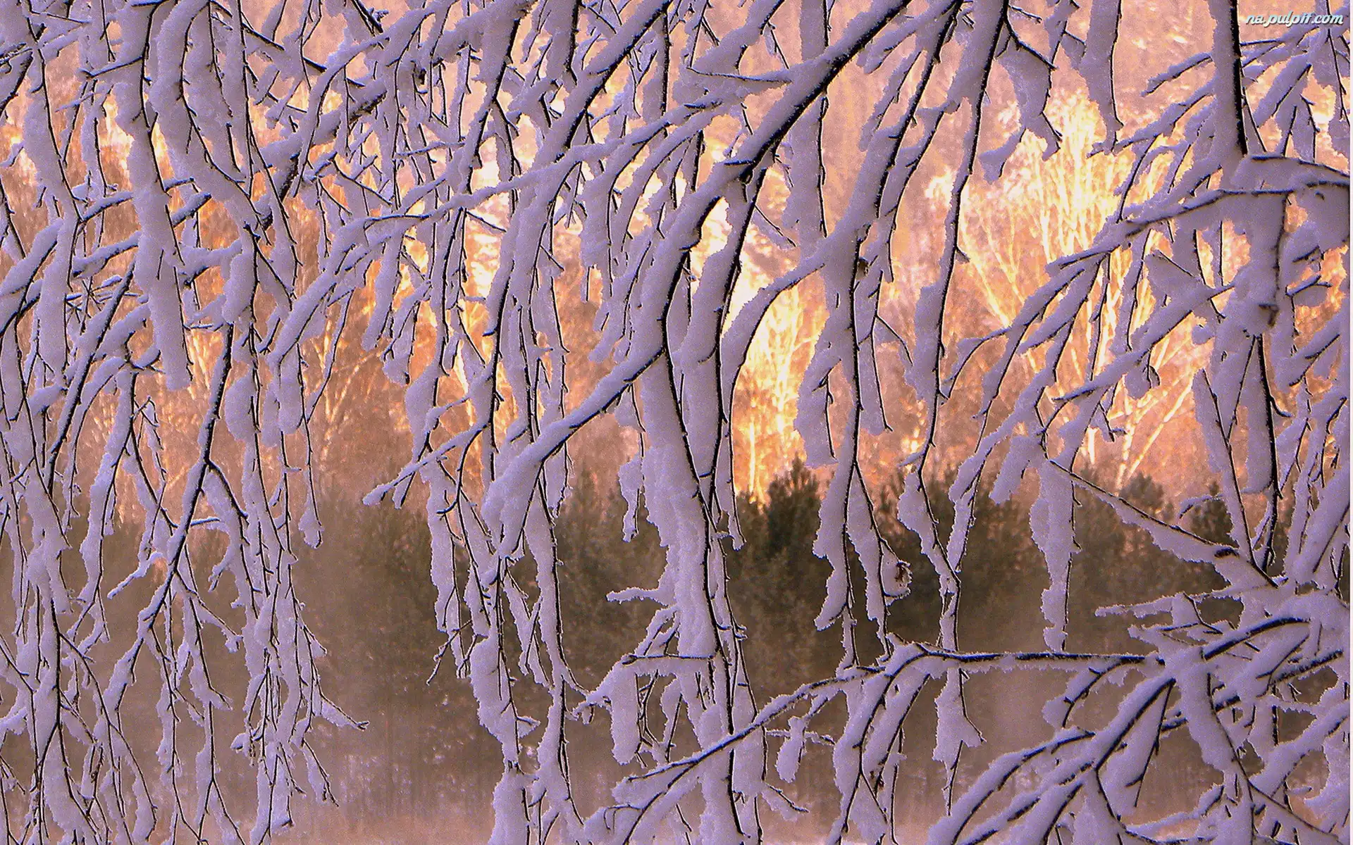 Światło, Gałęzie, Ośnieżone, Przebijające