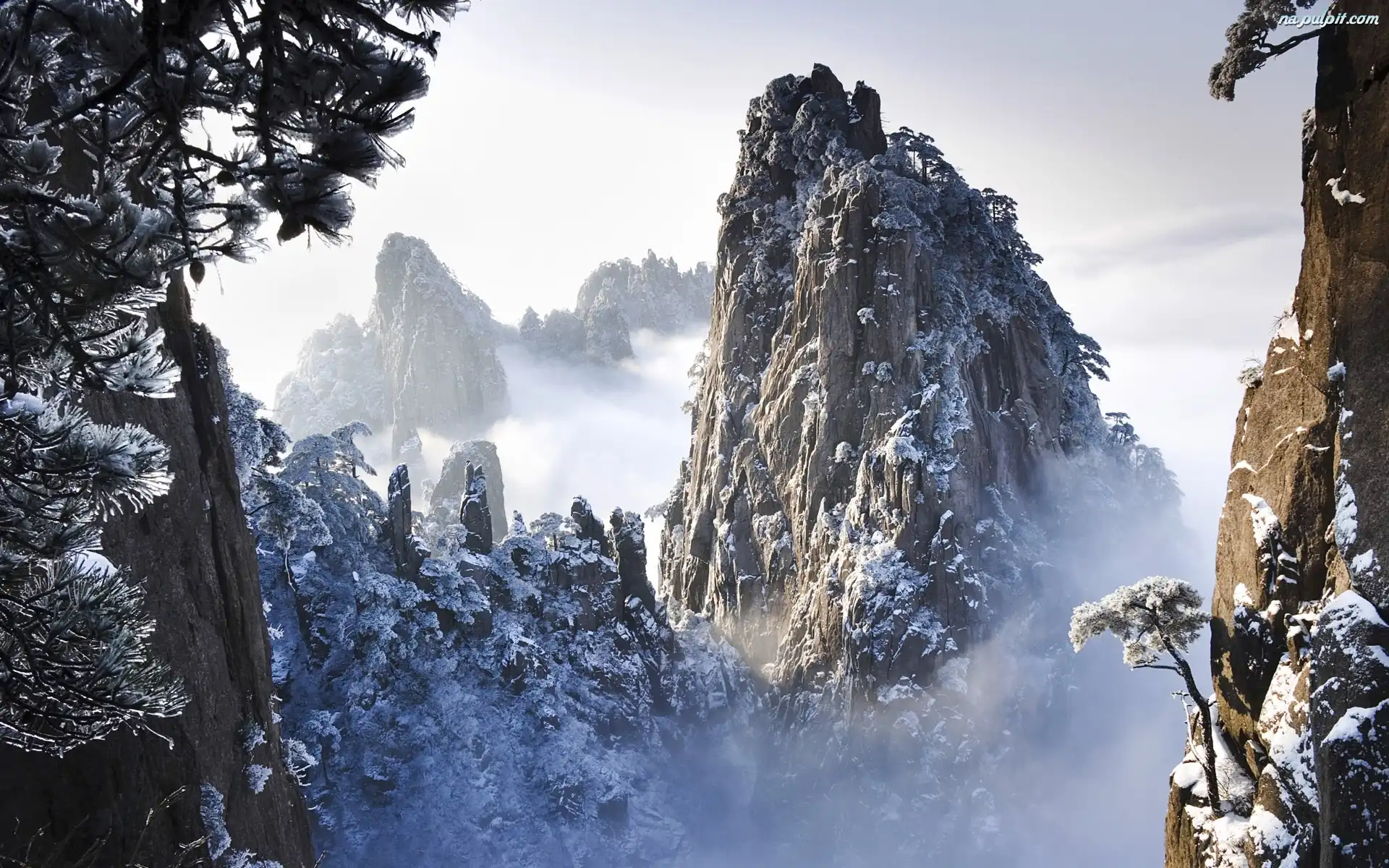 Kamienie, Góry, Jezioro Oszronione, Drzewa Zima, Drzewo Jezioro, Góry, Chmurki Plaża, Fale, Góry, Morze Góra Góra Zima, Rzeka Góra Góry, Krzewy palmy, Chmura, Góry, Niebo Góry, śnieg domki, Góry, dwa drzewa skały, Niebo
