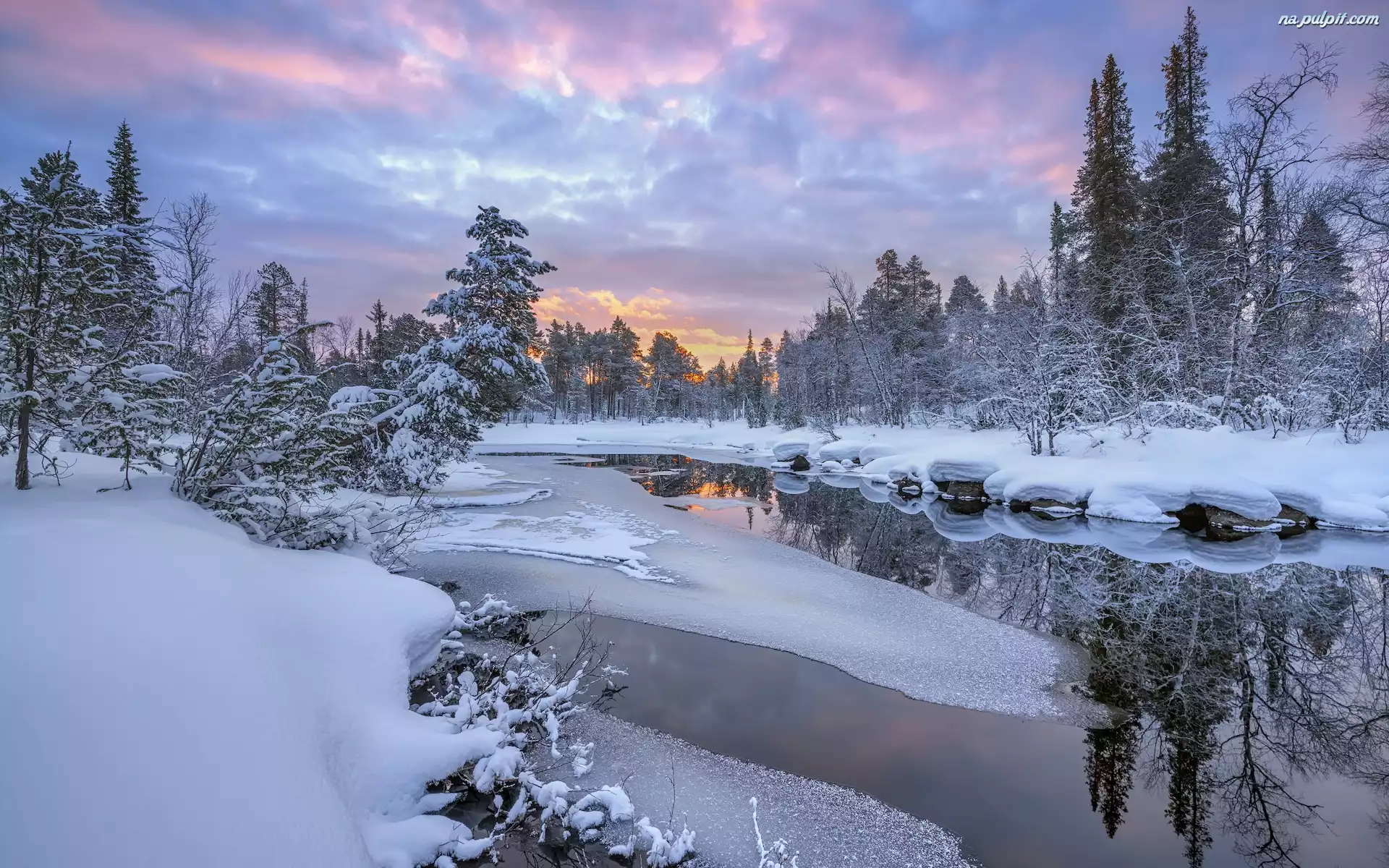 Las, Drzewa, Jezioro, Rosja, Półwysep Kolski, Zima, Ośnieżone Na Pulpit