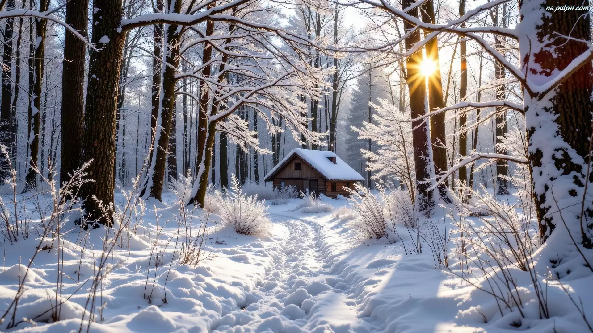 Drzewa, Dom, Krzewy, Zima, Ślady, Droga, Las, Ośnieżone Na Pulpit