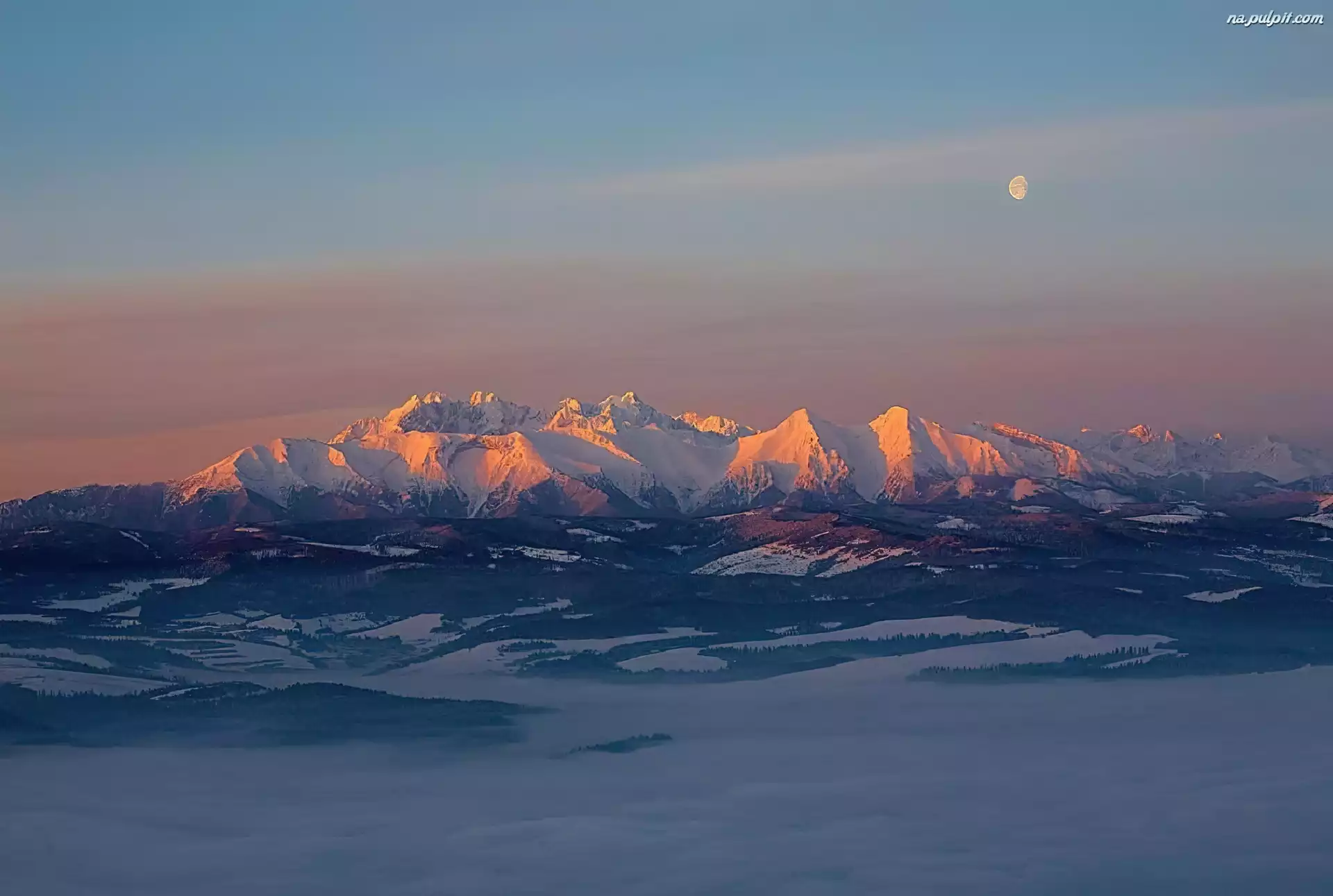 Księżyc, Ośnieżone, Góry Na Pulpit