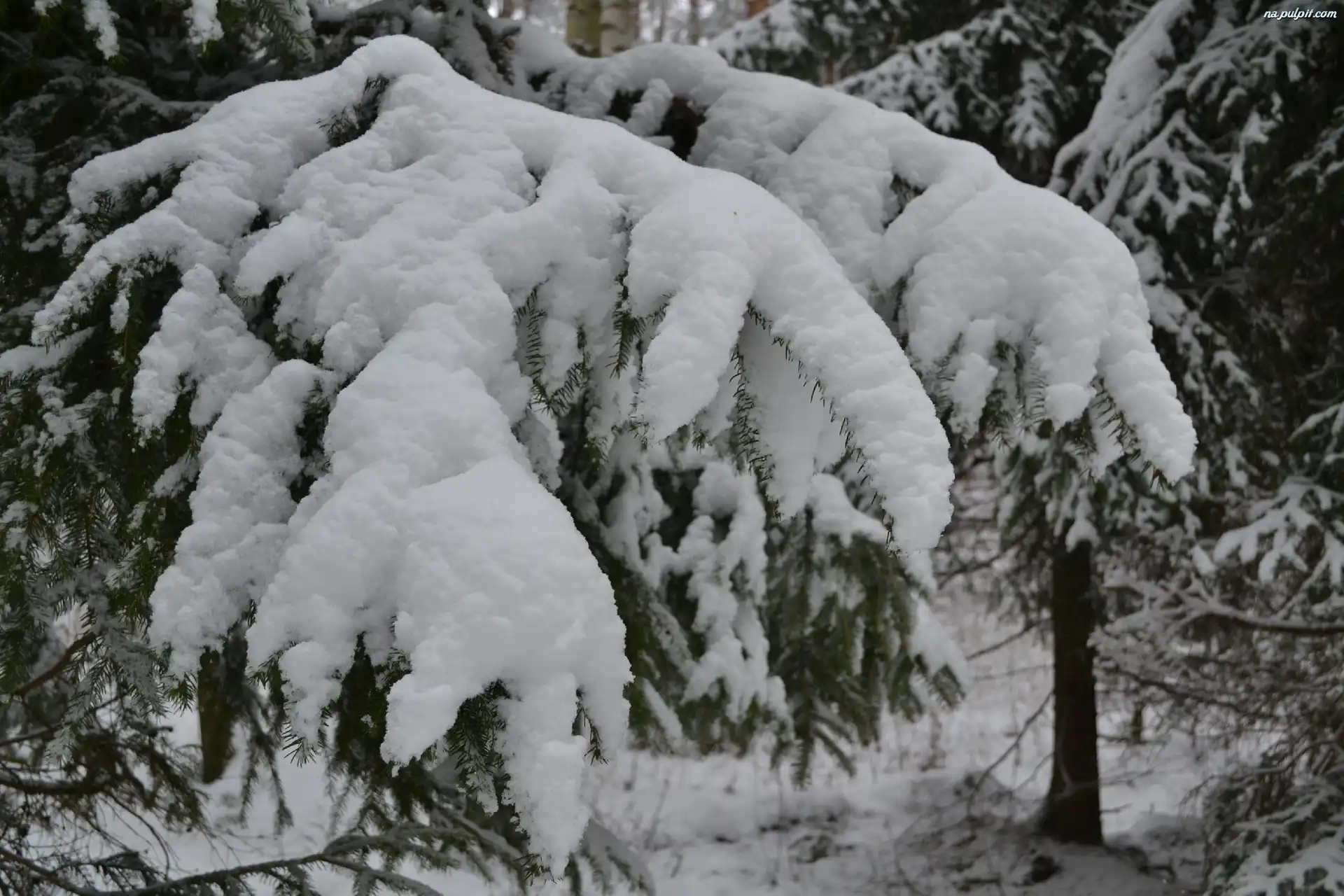 Świerku, Ośnieżone, Gałęzie