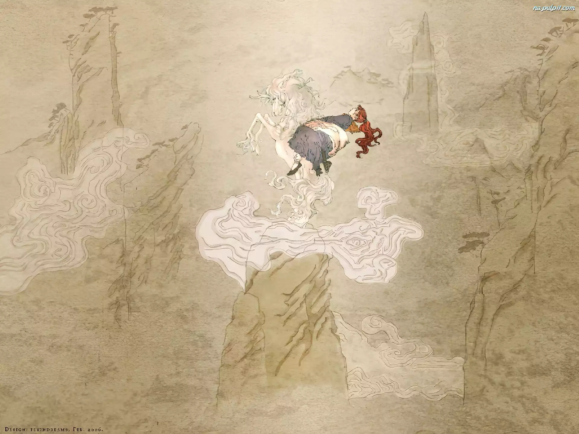 osoba, koń, Juuni Kokki, skała Na Pulpit