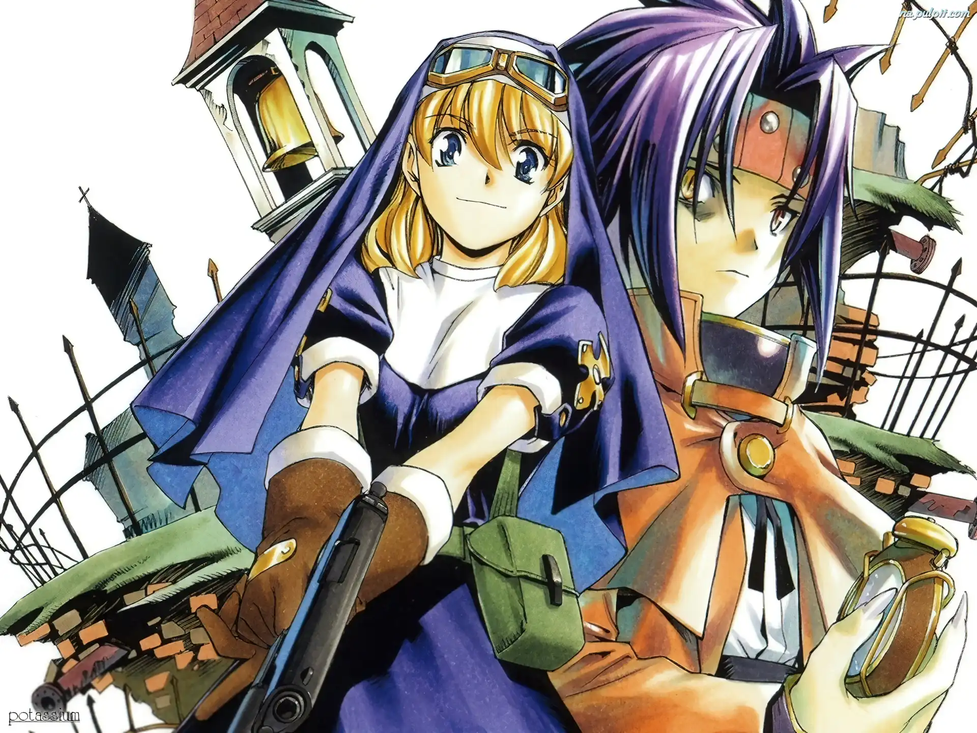 osoby, kościół, Chrono Crusade, pistolet