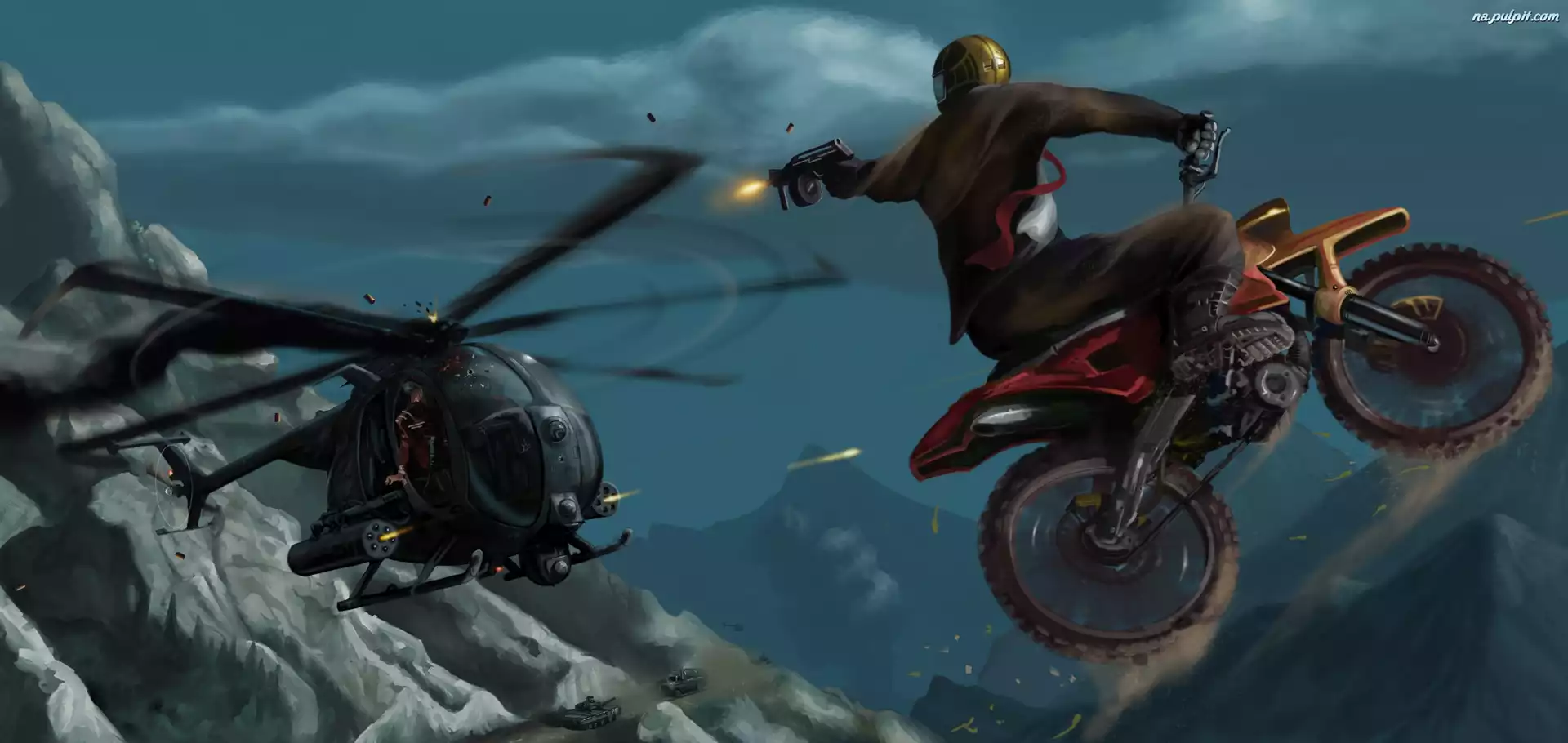 Ostrzał, Helikopter, Wojownicy, Motocykl
