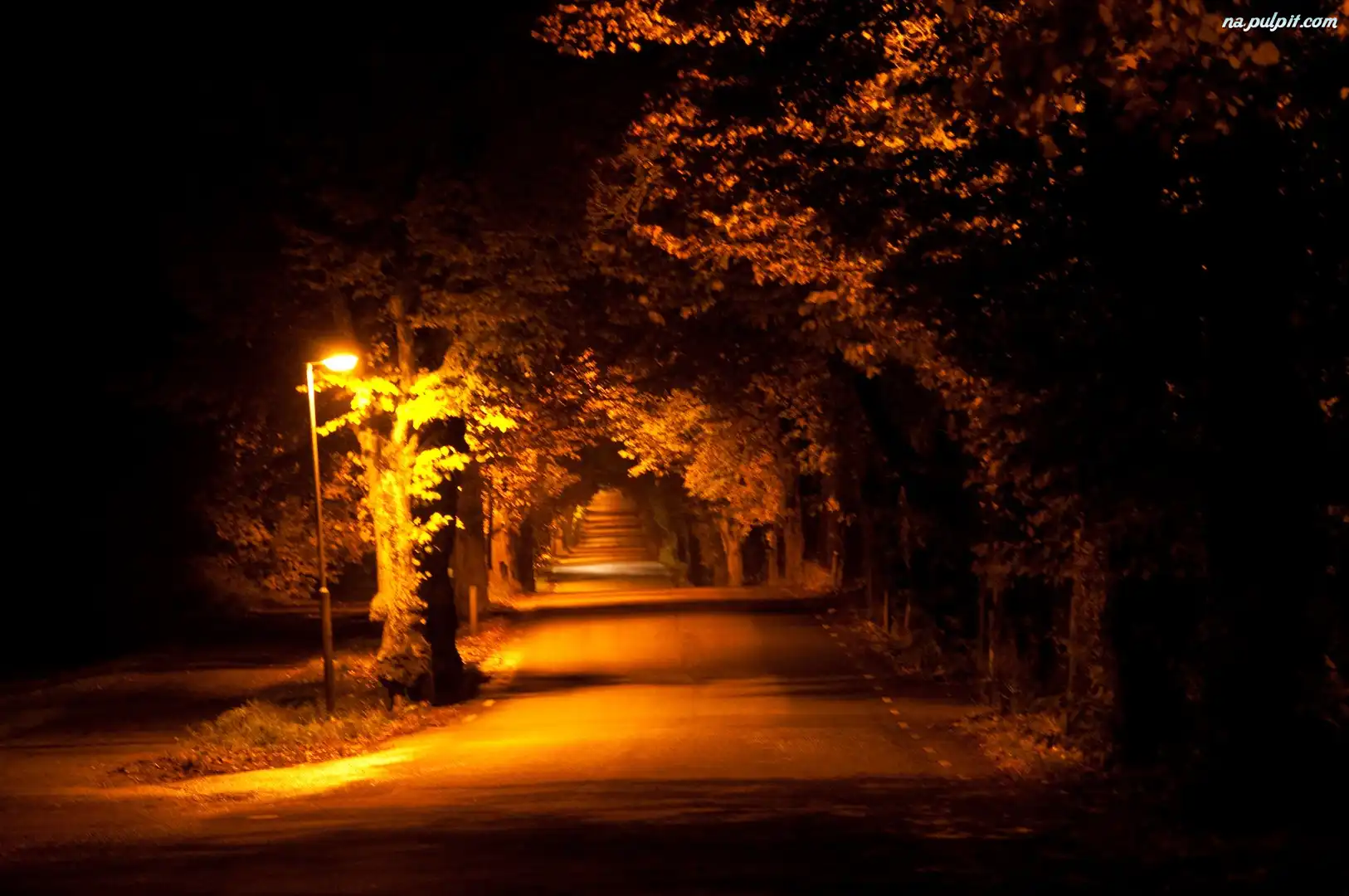 Oświetlenie, Drzewa, Droga, Lampa Na Pulpit