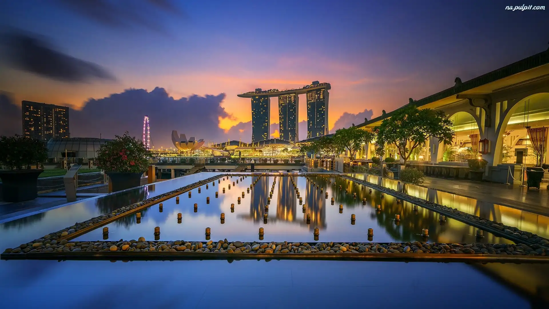 Hotel, Oświetlenie, Woda, Marina Bay Sands, Singapur, Noc Na Pulpit