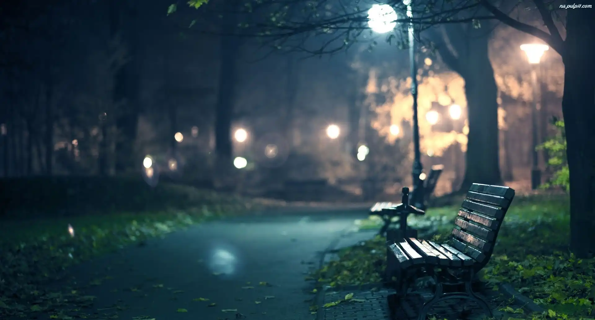 Oświetlenie, Alejka, Park, Noc, Ławka Na Pulpit