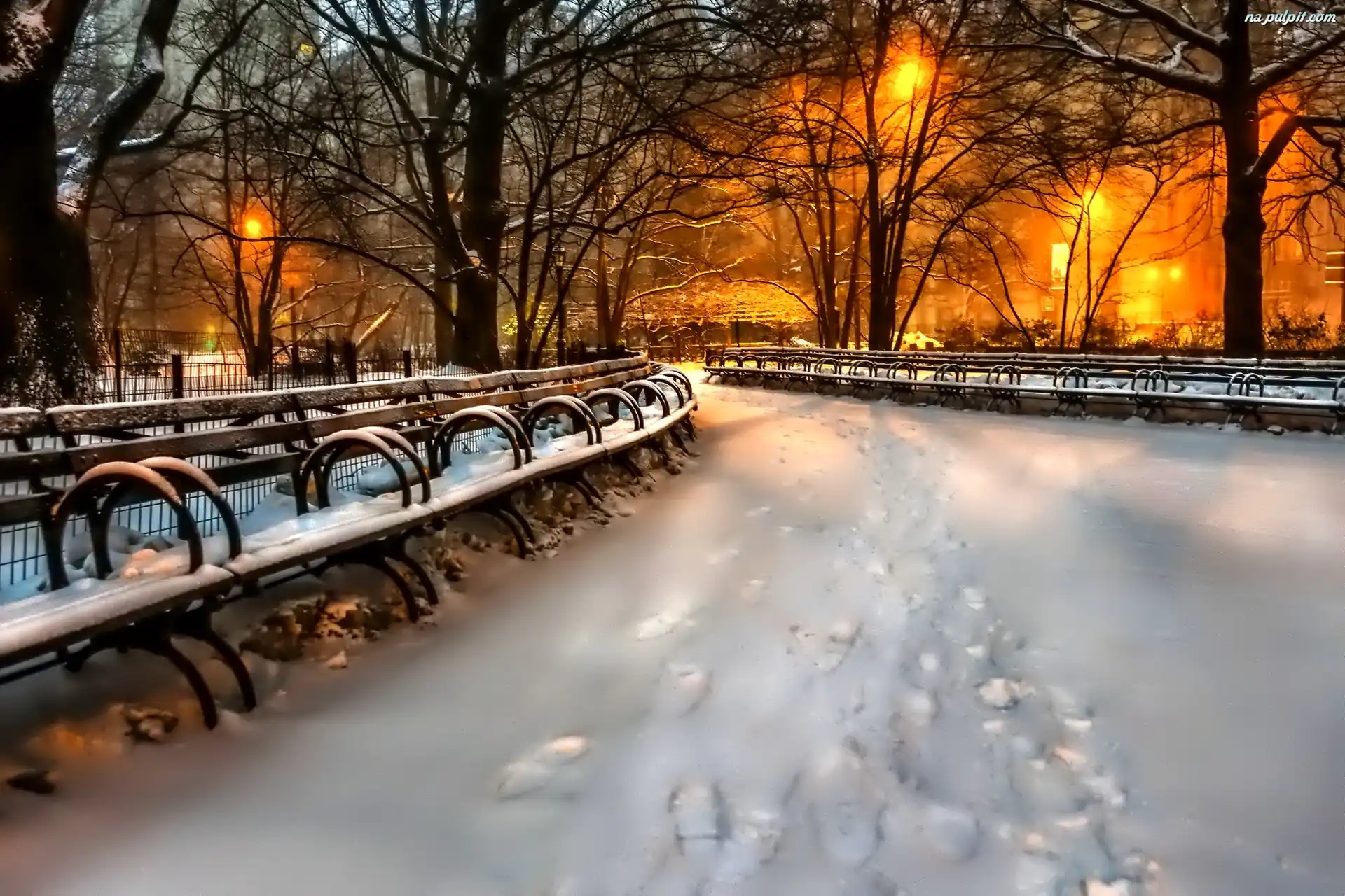 Oświetlenie, Alejka, Park, Śnieg Na Pulpit
