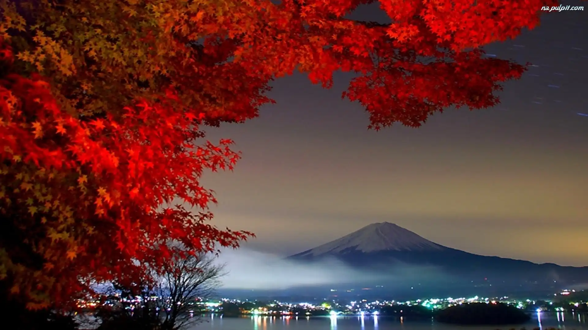 Drzewo, Oświetlone Miasto, Wulkan Fudżi, Japonia, Natura Na Pulpit