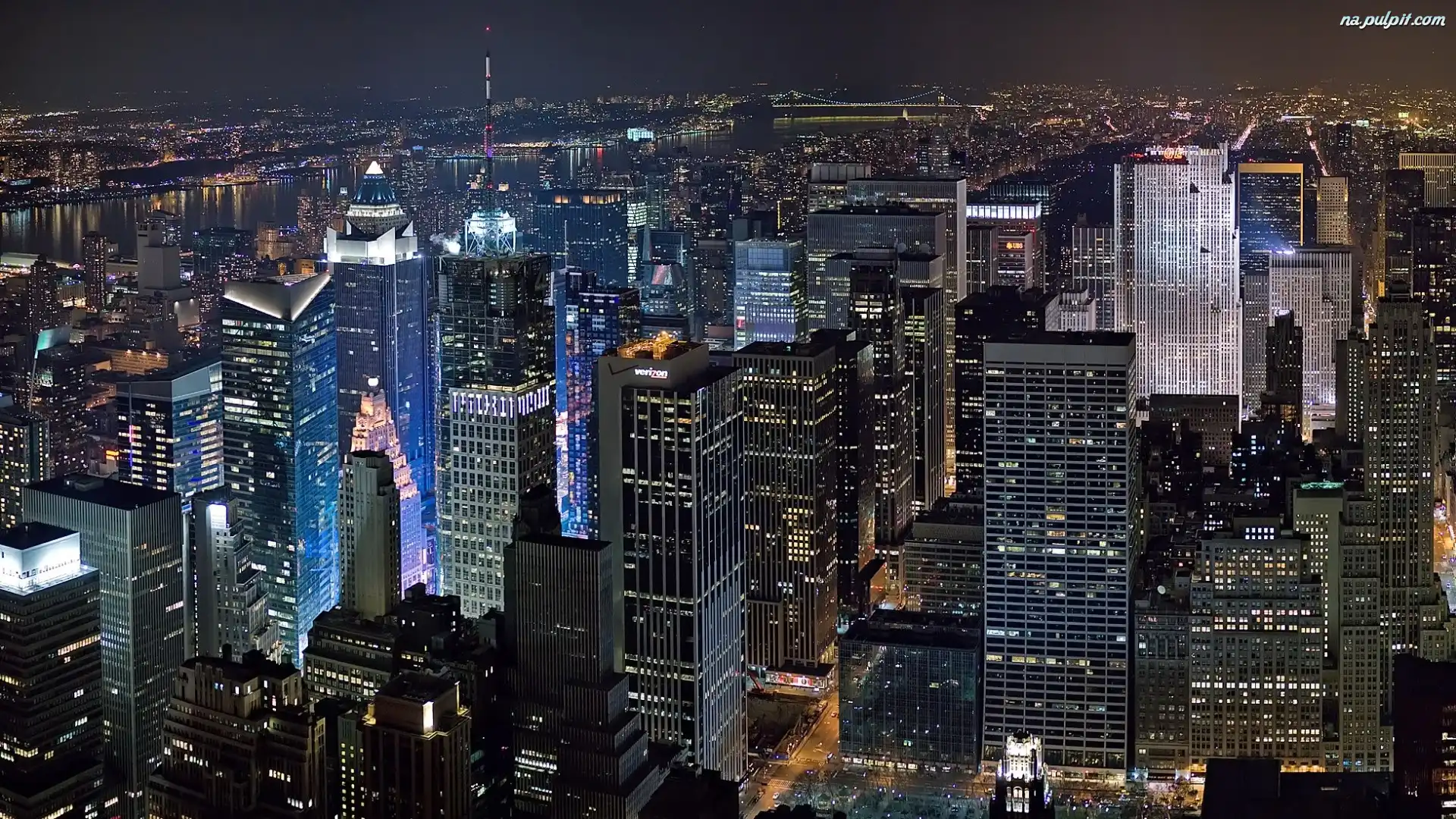 Oświetlone, Nocą, Miasto, Wieżowce Na Pulpit