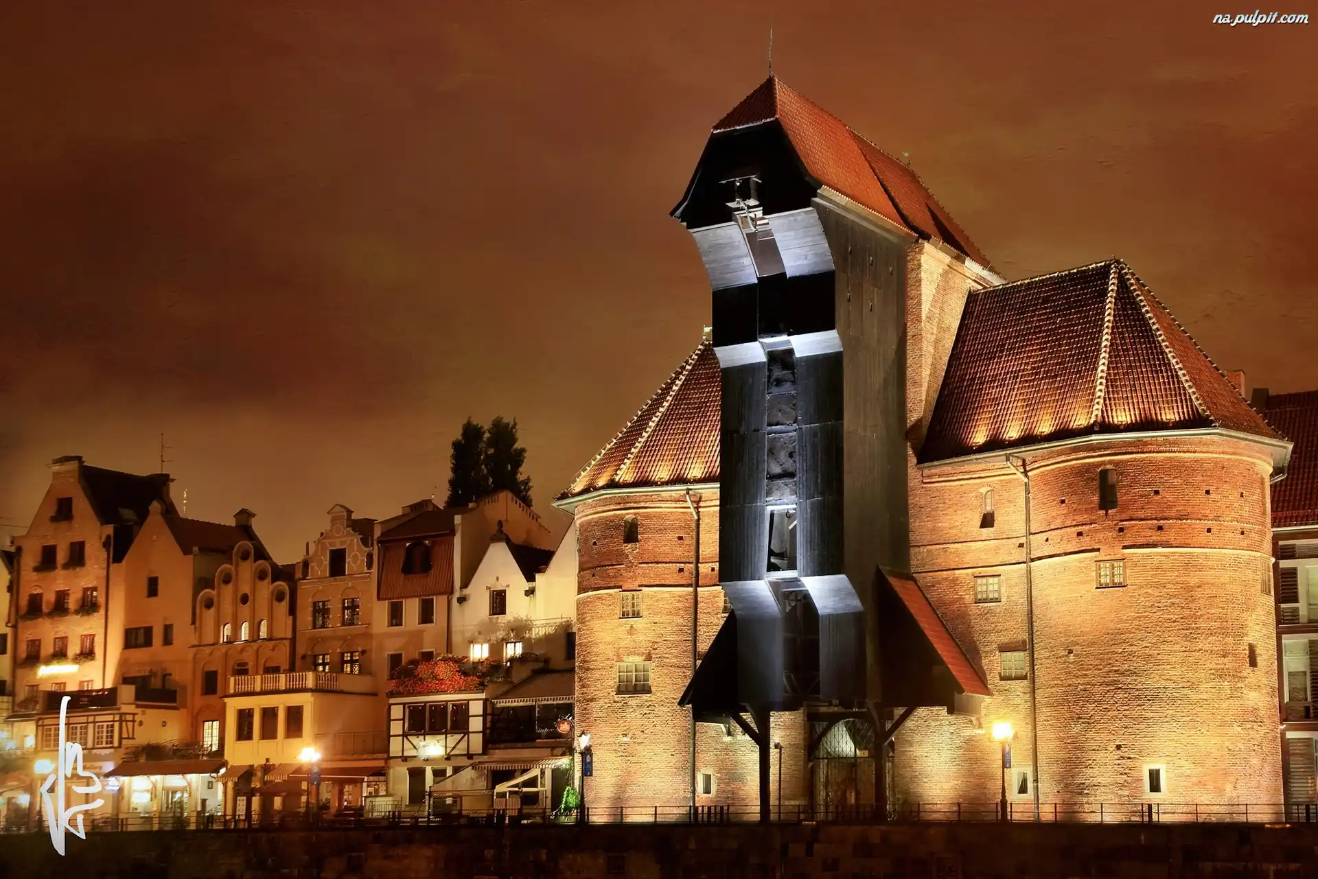 Oświetlony, Gdańsk, Polska, Spichlerz, Kamienice, Miasto Na Pulpit