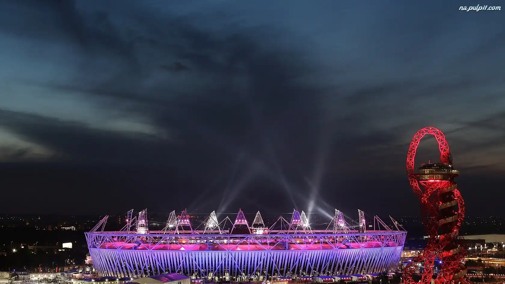 Noc, Oświetlony, Stadion Na Pulpit