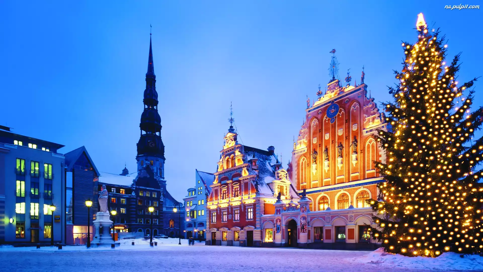 Narodzenie, Łotwa, Boże, Wieczór, Miasto, Ryga, Choinka Na Pulpit