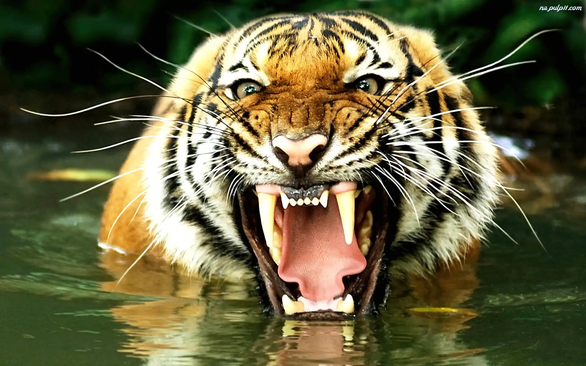Otwarta, Kły, Język, Paszcza, Tygrys, Odbicie Na Pulpit