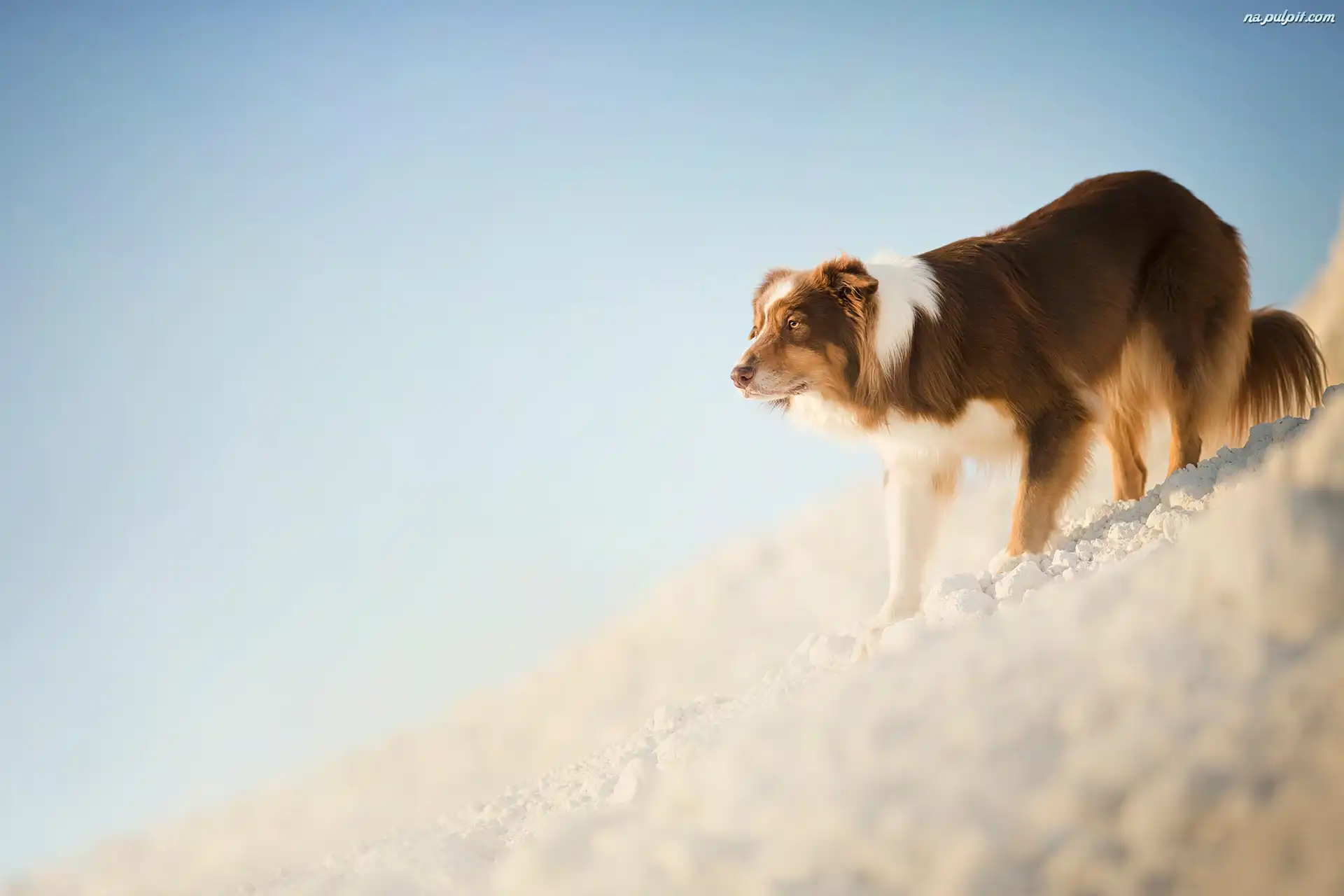 Pies, Owczarek australijski, Zima, Śnieg Na Pulpit
