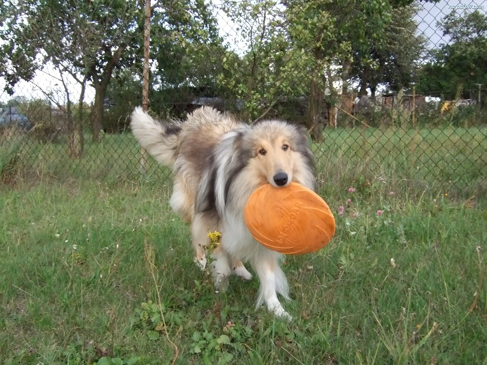 Owczarek szkocki długowłosy, frizbee Na Pulpit