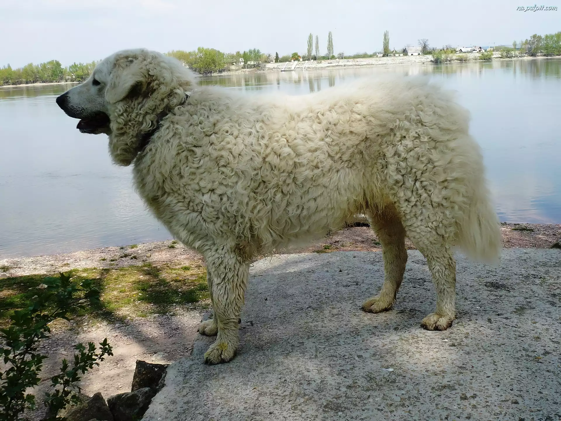 Owczarek węgierski Kuvasz, woda Na Pulpit