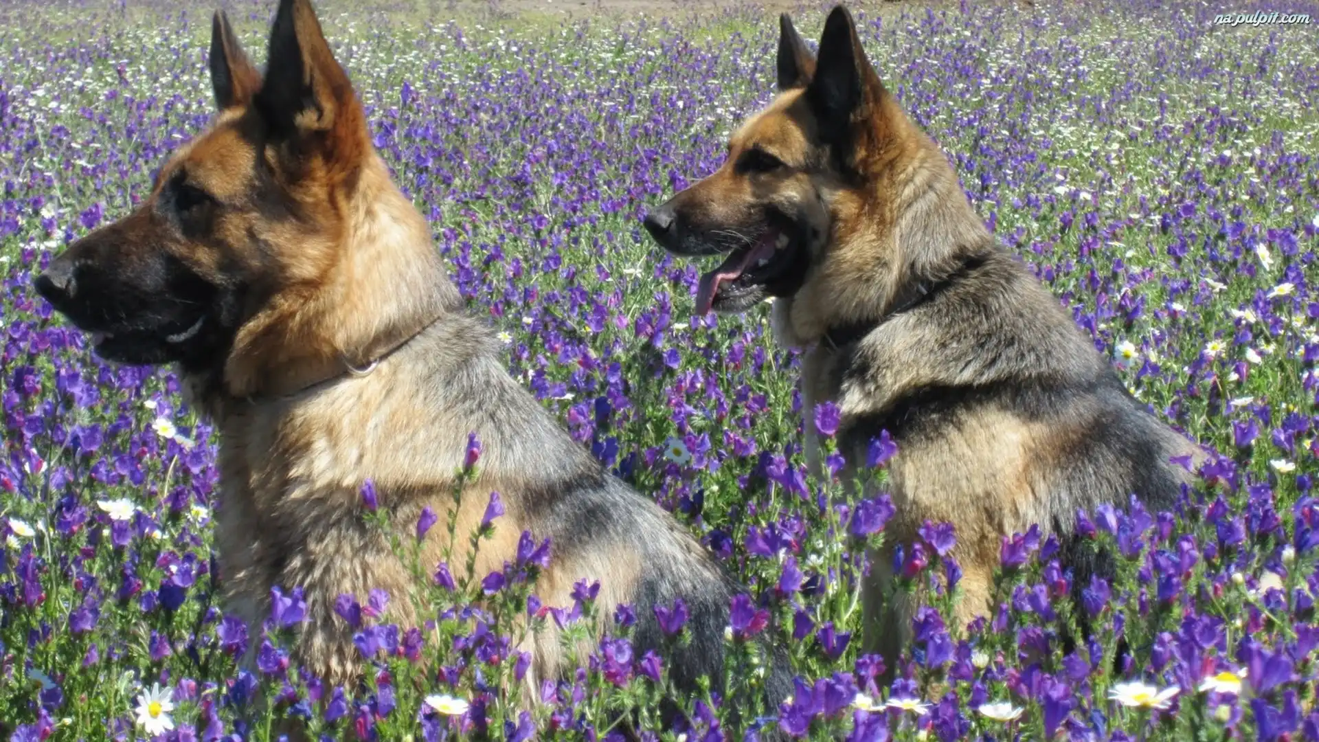 Łąka, Dwa, Owczarki Niemieckie Na Pulpit