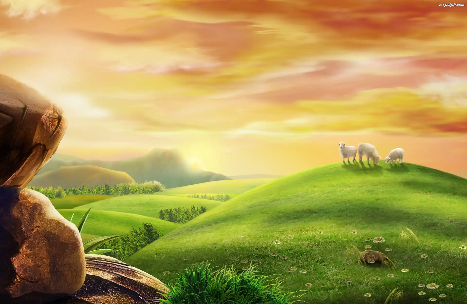 Owieczki, Słońca, Zachód, Łąka