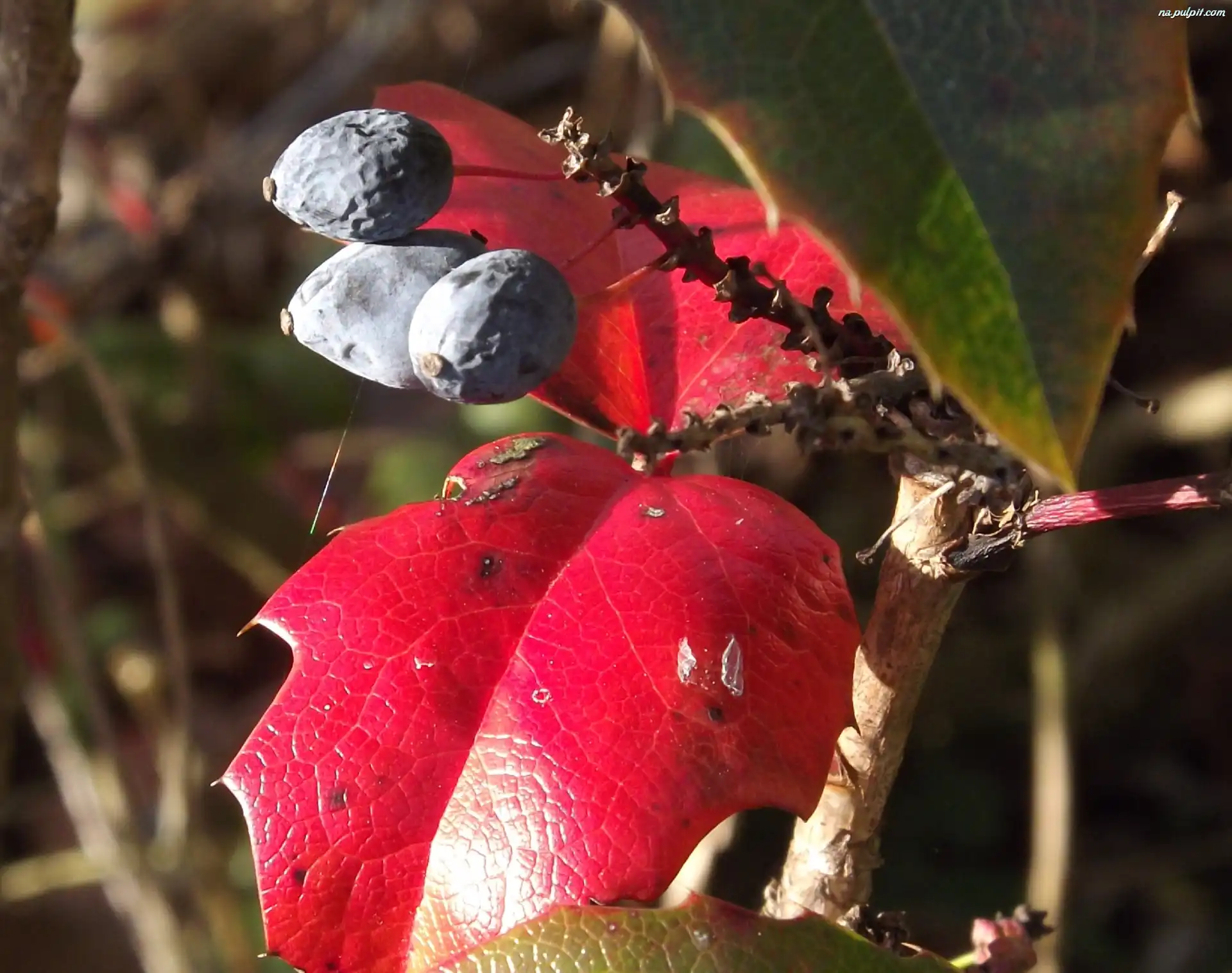Owoc, Liście, Czerwone, Ostrokrzew, Granatowy
