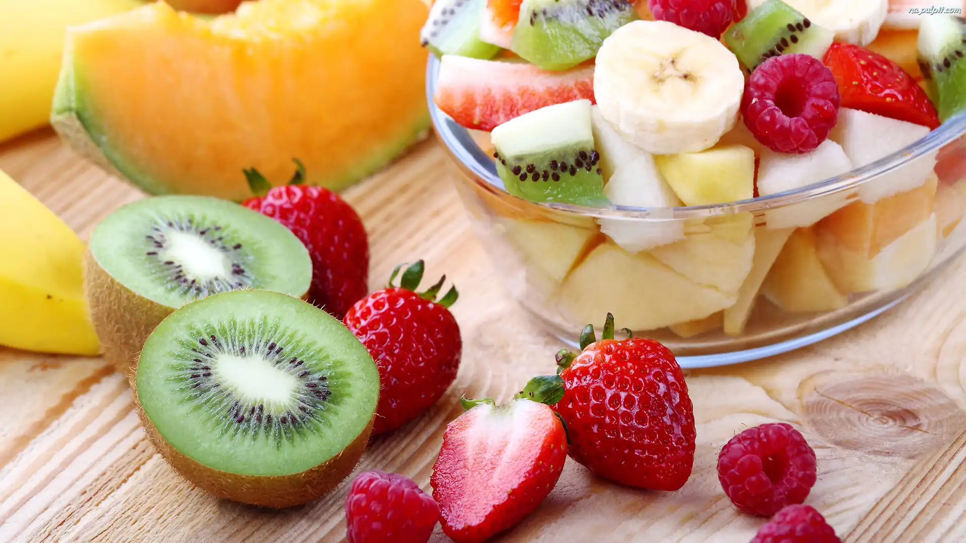 Maliny, Owoce, Kiwi, Mango, Miska, Truskawki, Sałatka, Banany Na Pulpit