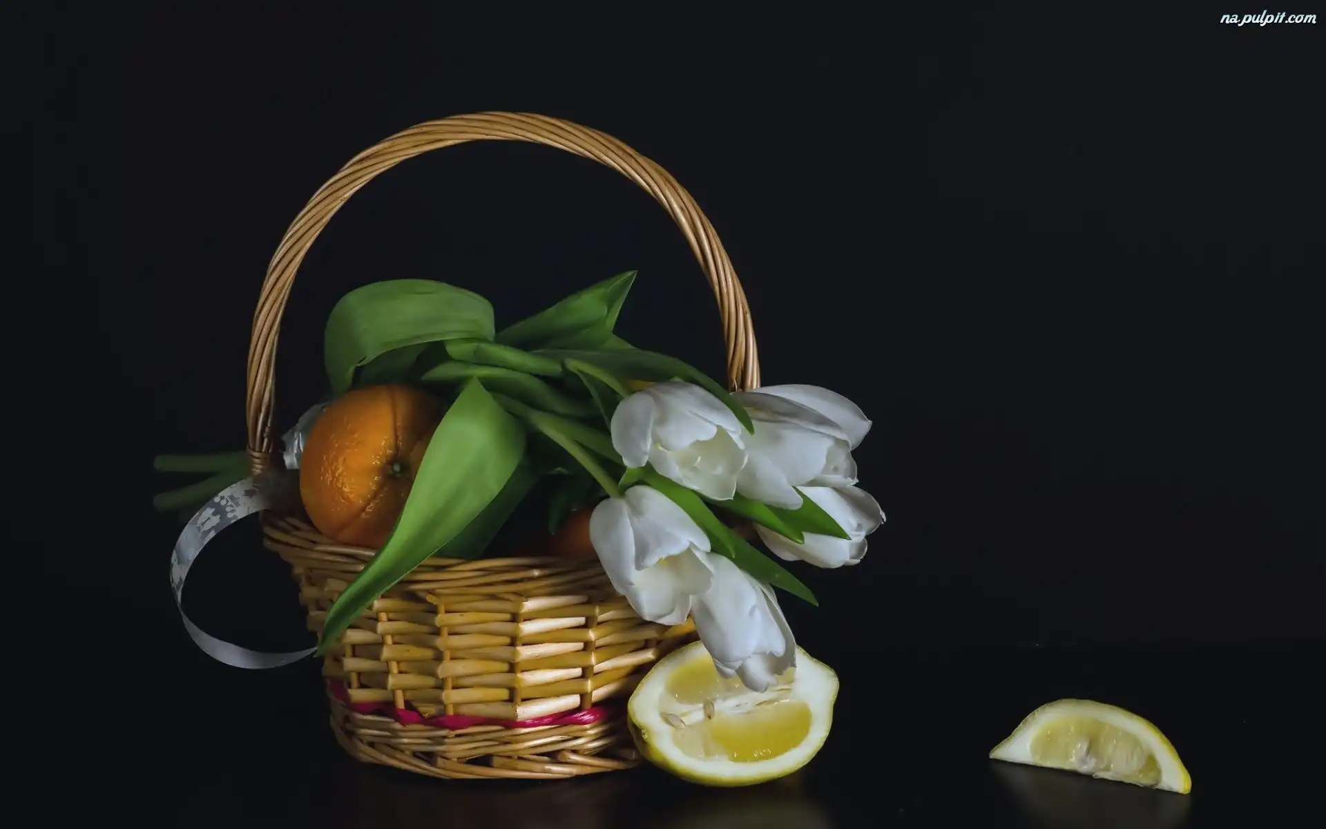 Owoce, Tulipanów, Białych, Bukiet, Koszyk