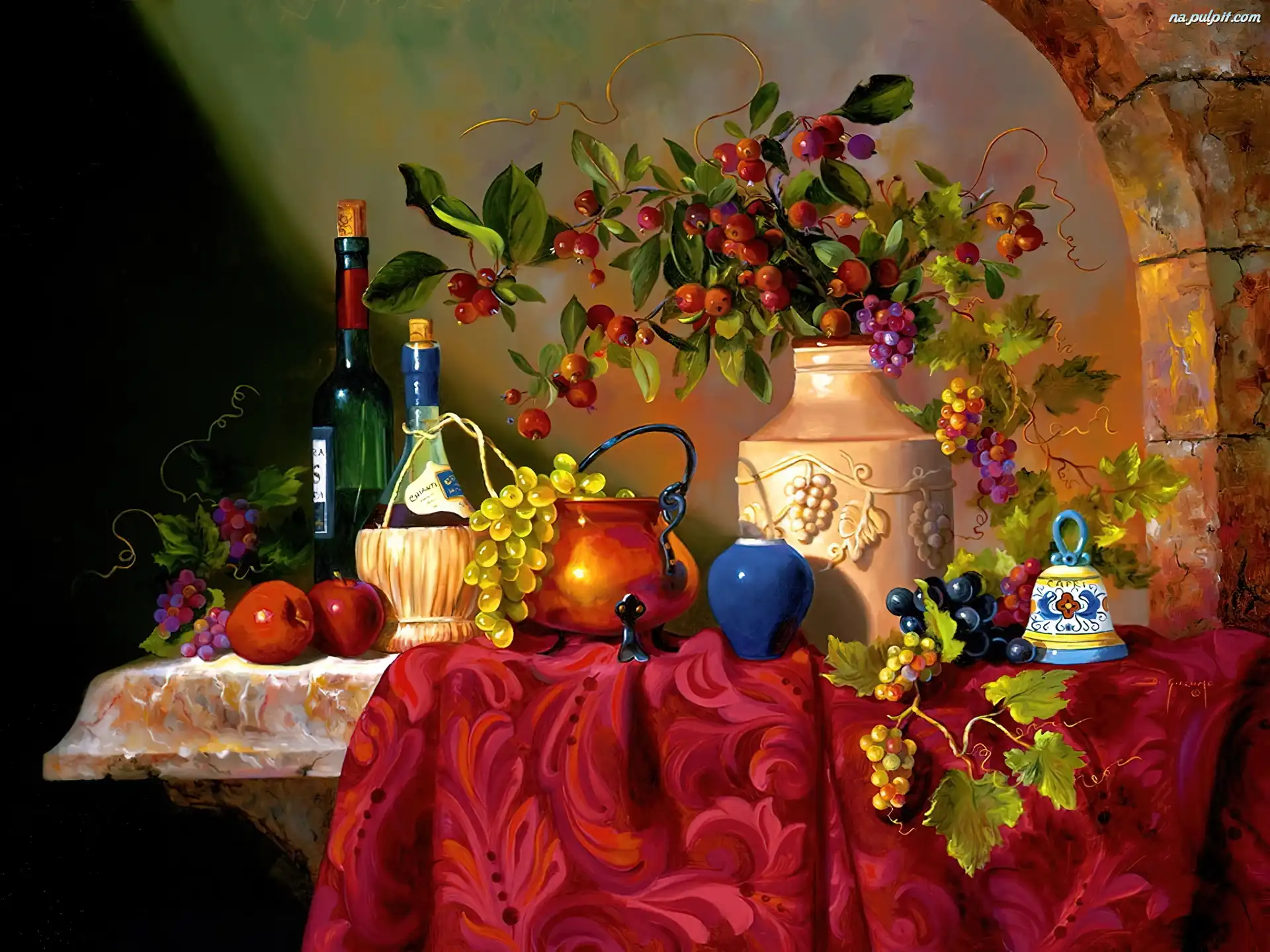Owoce, Butelki, Dzban, Wino Na Pulpit