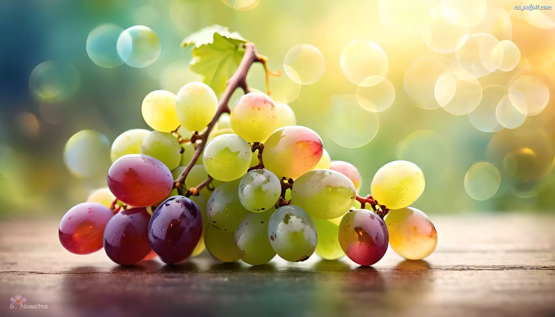 Winogrona, Owoce, Kiść, Grafika AI Na Pulpit