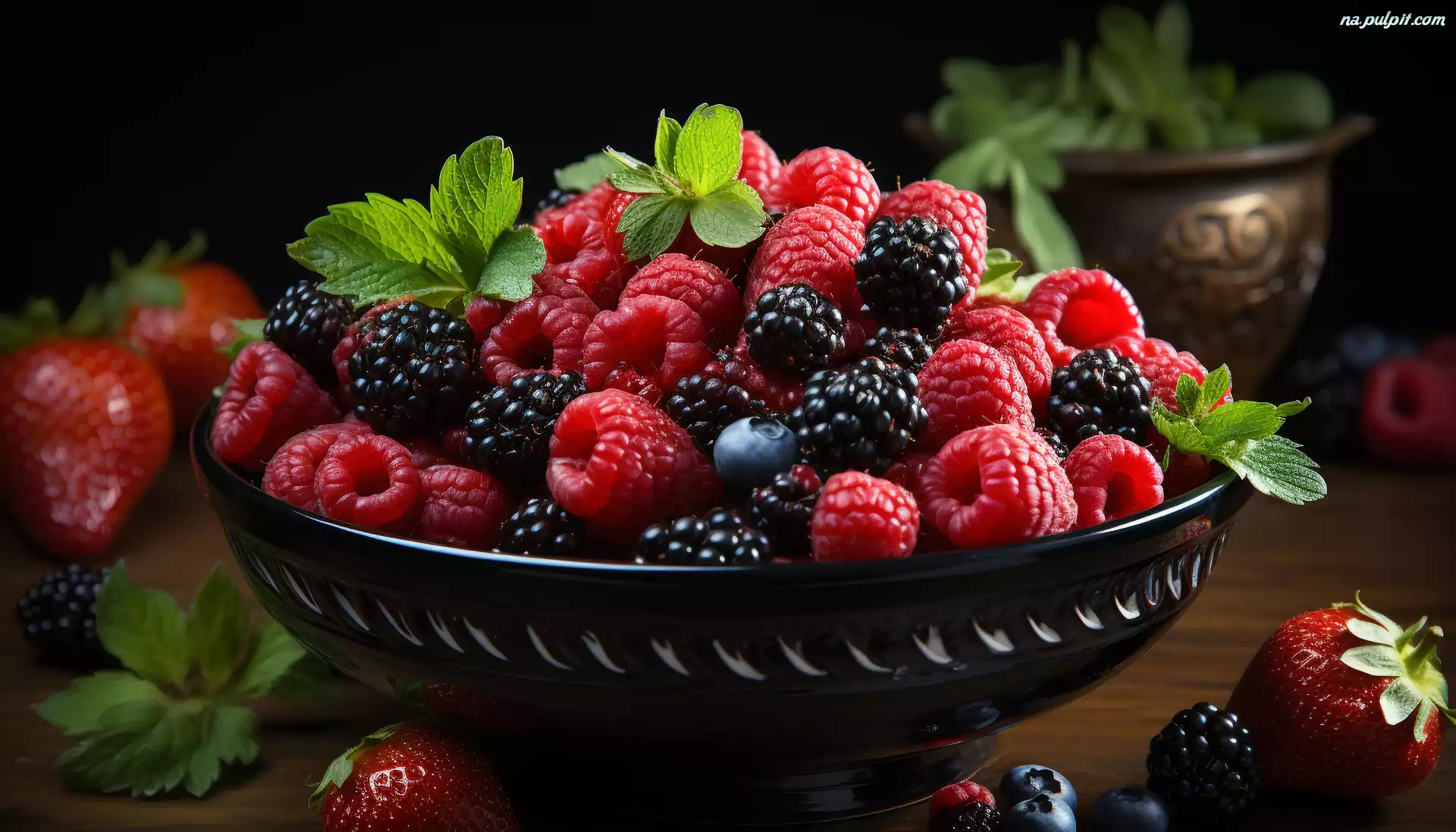Listki, Owoce, Maliny, Miska, Jeżyny Na Pulpit