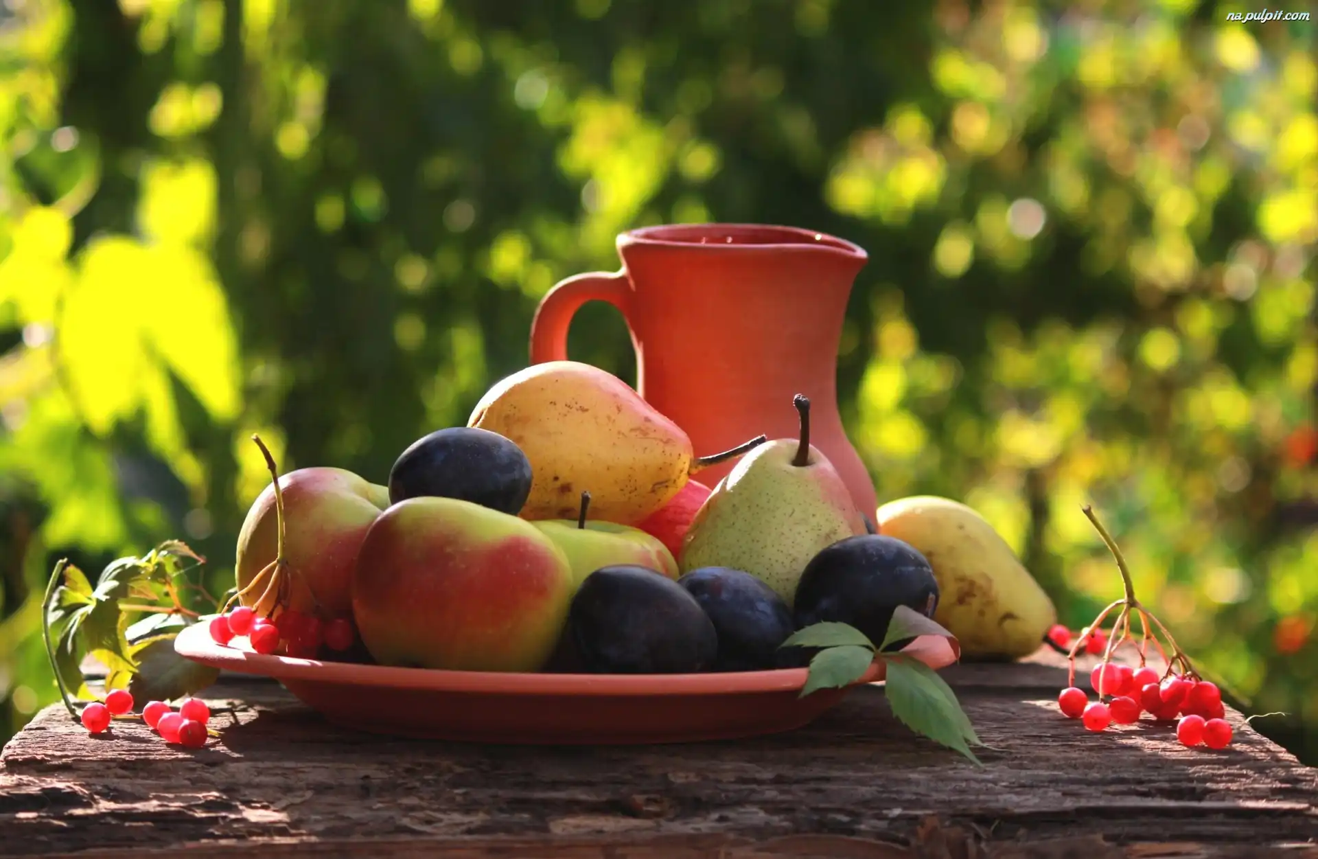 Światło, Ogród, Jesieni, Owoce, Ławka