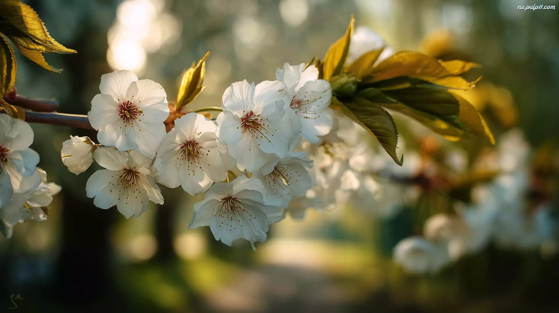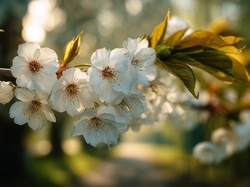 Białe, Kwiaty, Drzewo owocowe, Grafika AI Na Pulpit