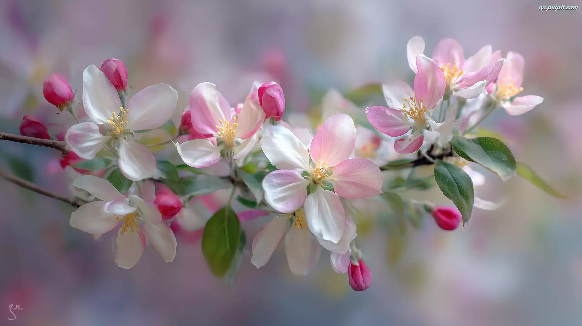 Różowe, Kwiaty, Drzewo owocowe, Grafika AI Na Pulpit