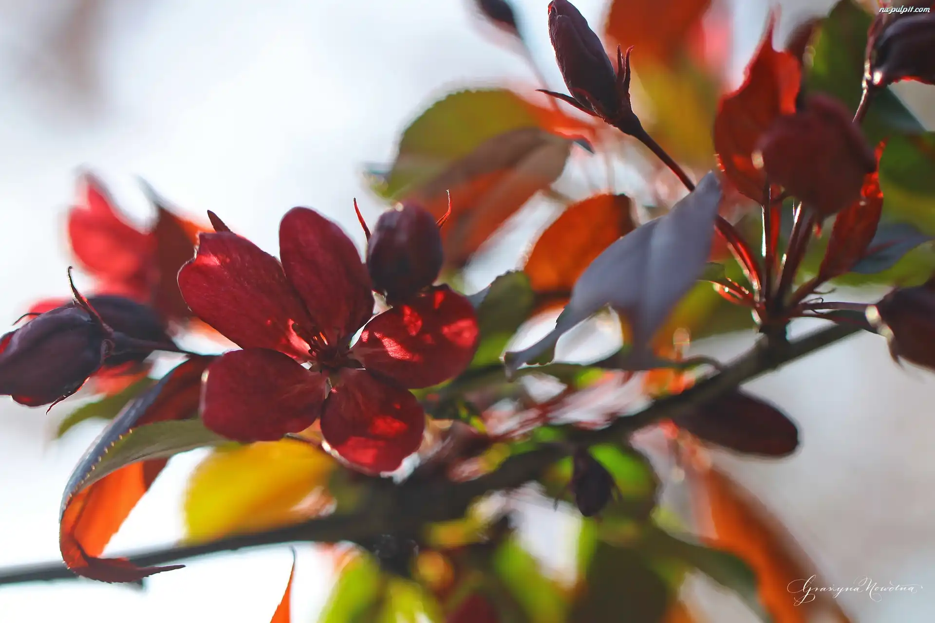 Owocowe, Kwiaty, Czerwone, Drzewo