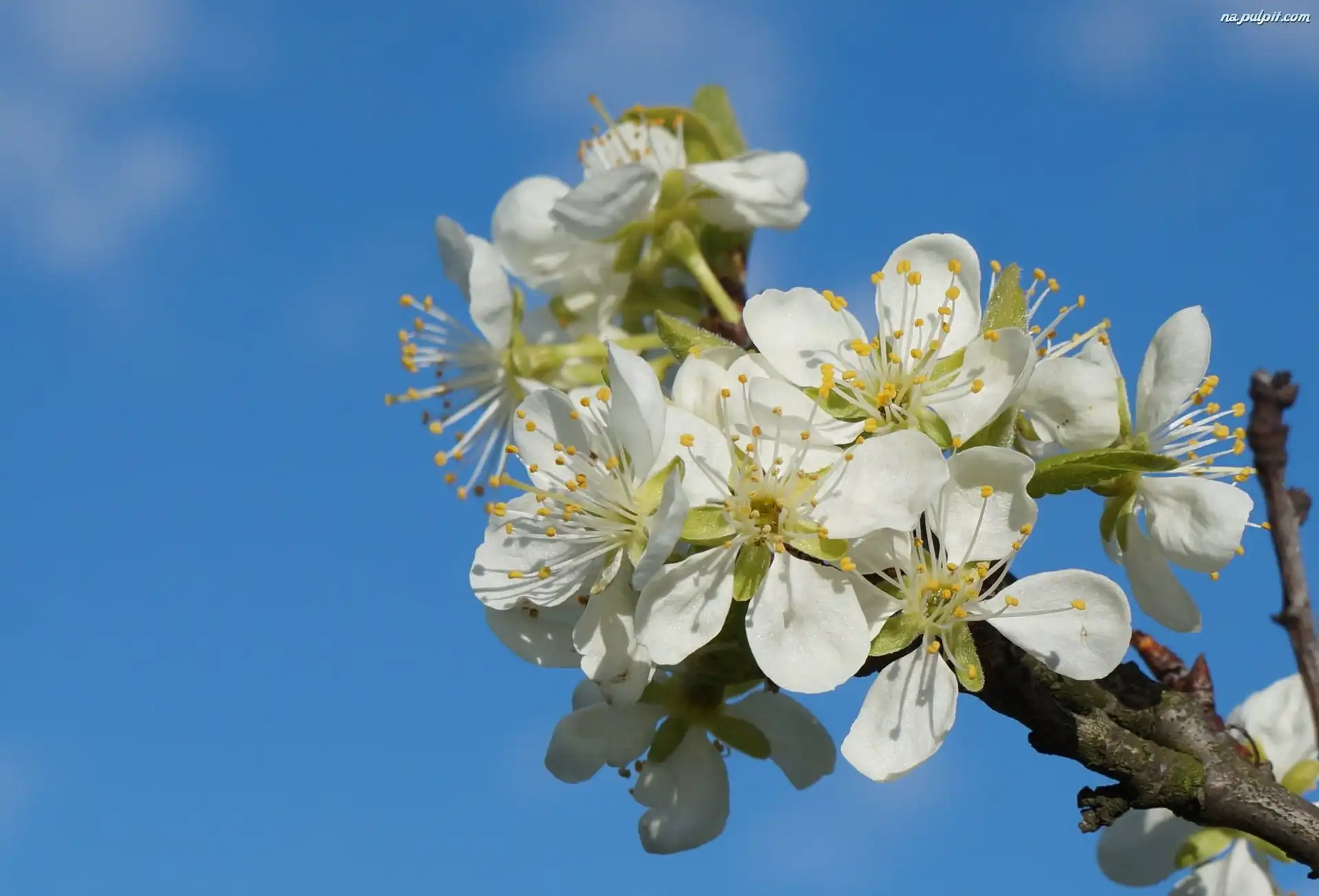 Niebo, Owocowe, Niebieskie, Białe, Kwitnące, Drzewo, Kwiaty Na Pulpit