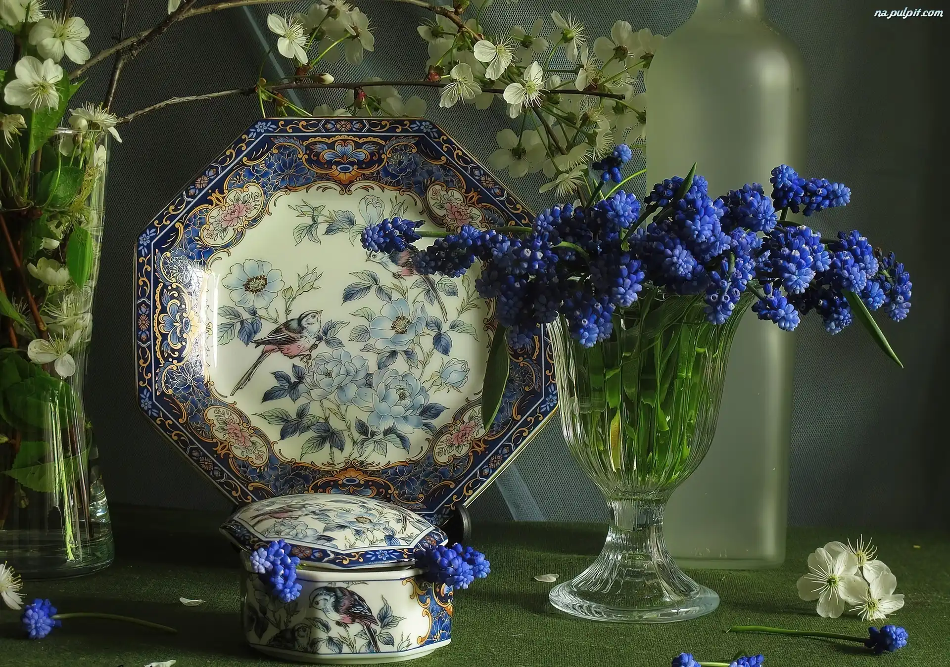 Owocowego, Kwiaty, Białe, Szafirki, Drzewa