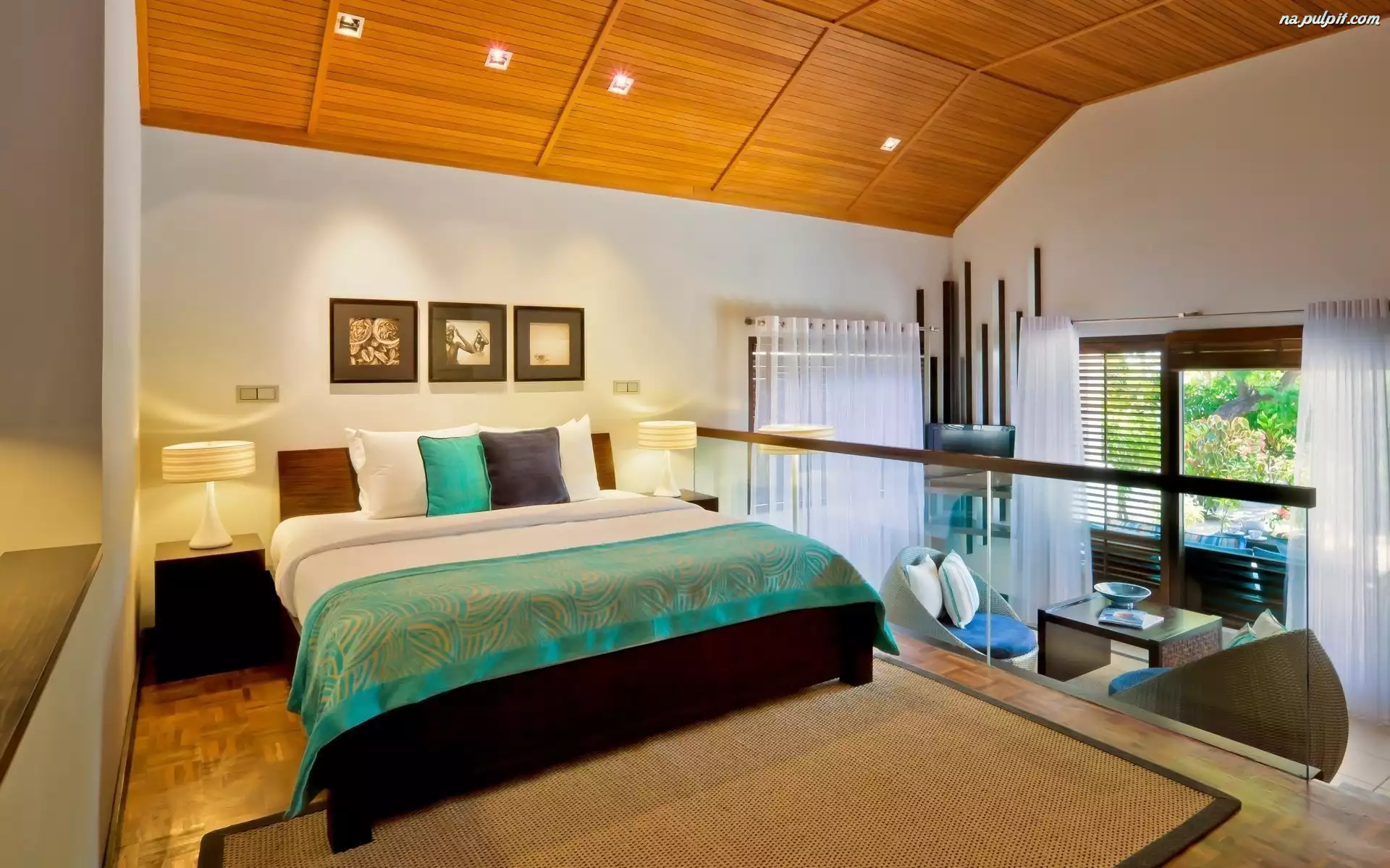 Łoże, Fotel, Stolik, Lampy, Sypialnia, Obrazy Na Pulpit