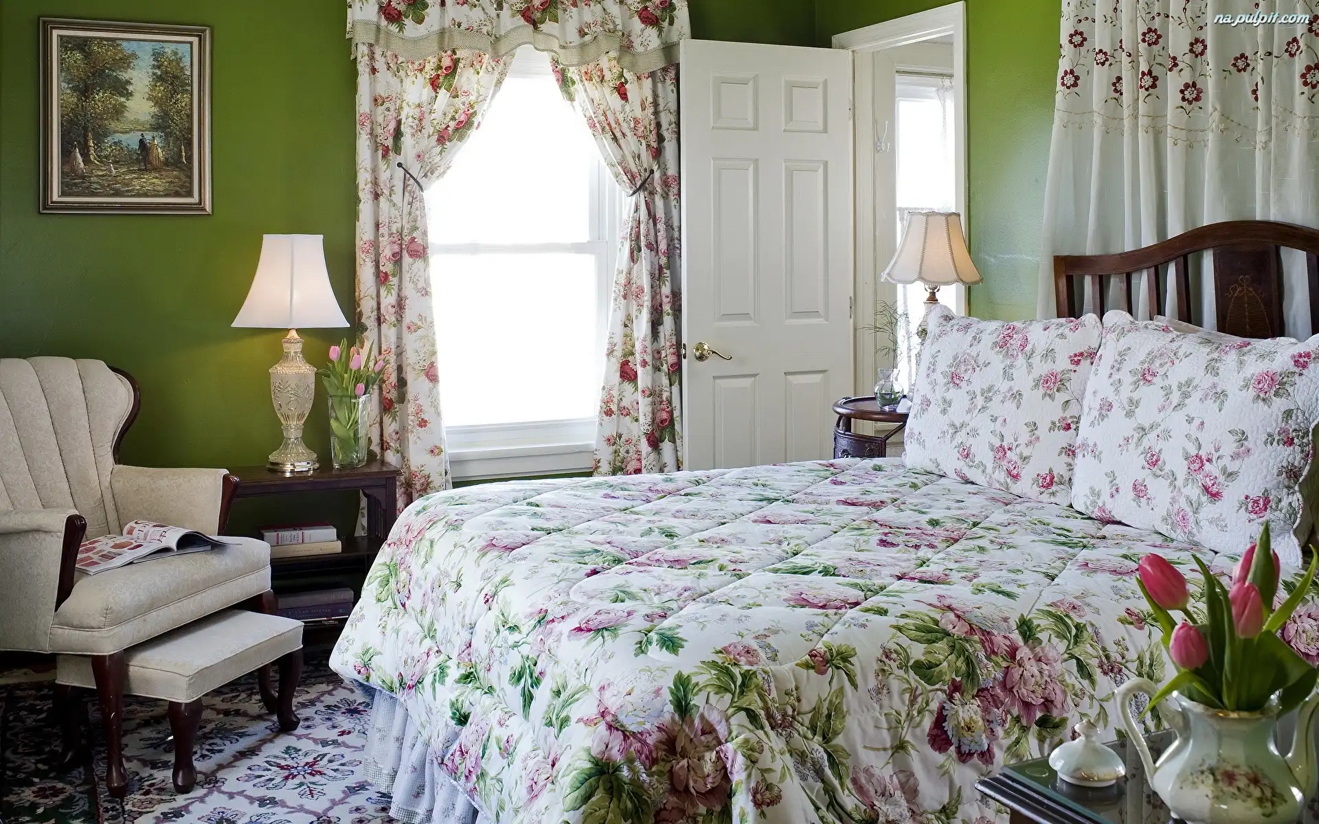 Łóżko, Okno, Zasłony, Fotel, Sypialnia, Lampy Na Pulpit