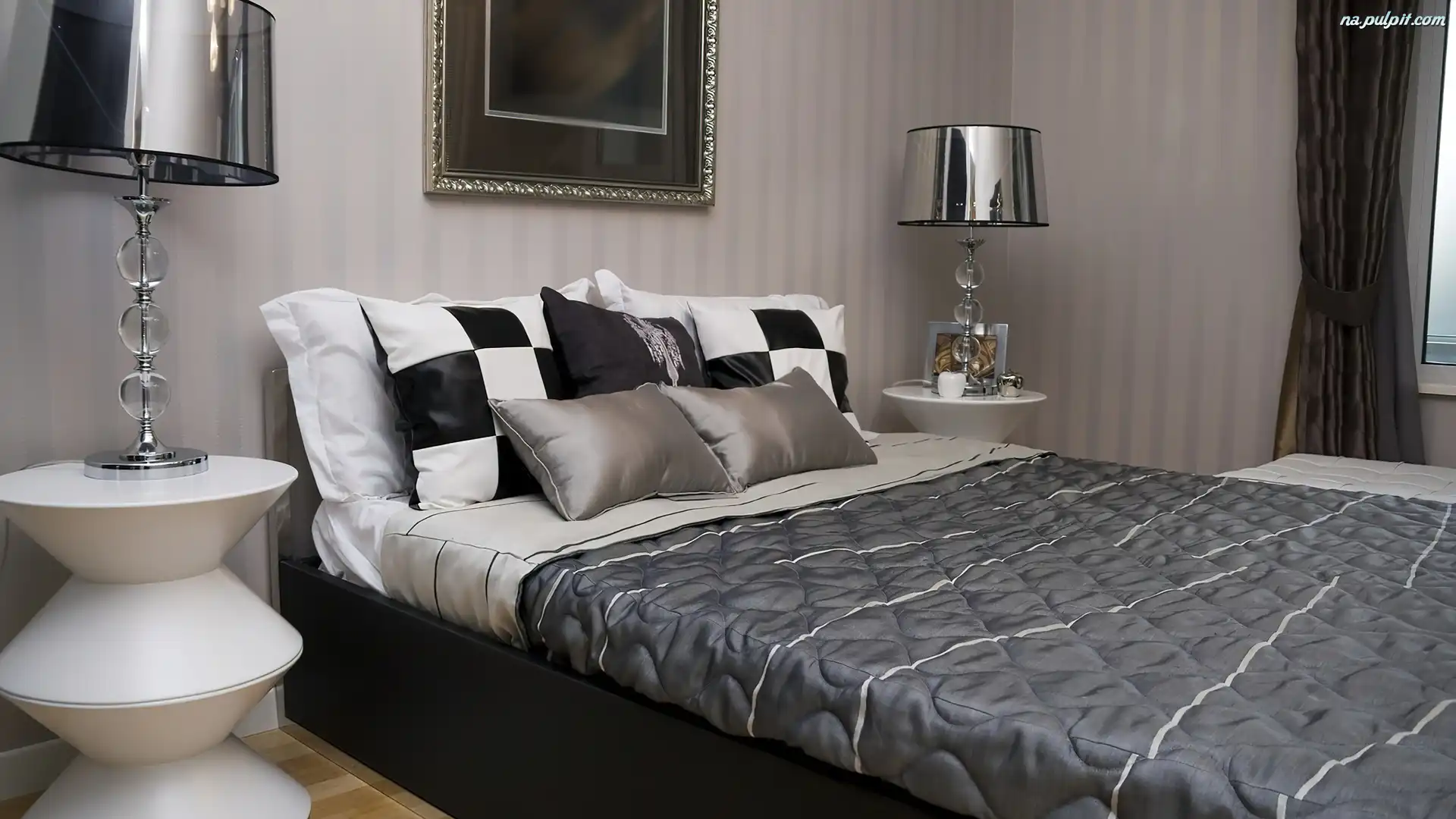 Łóżko, Lampy, Obraz, Nakrycie, Sypialnia, Poduszeczki Na Pulpit